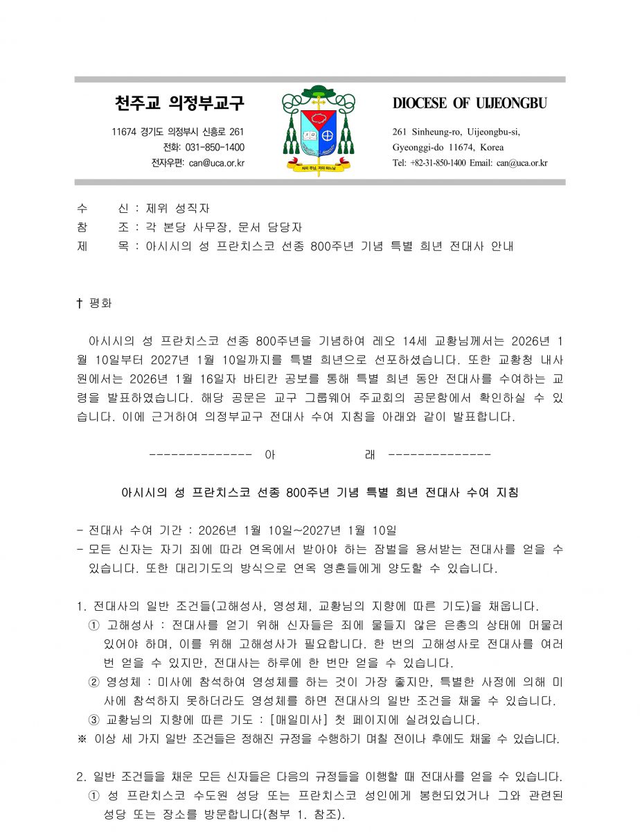 ★ 아시시의 성 프란치스코 선종 800주년 기념 특별 희년 전대사 안내