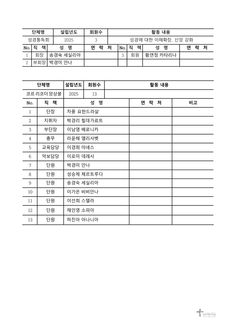 2026년 6기 본당활동 단체별 회원명단 - 교육분과