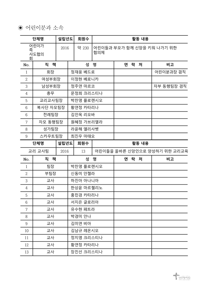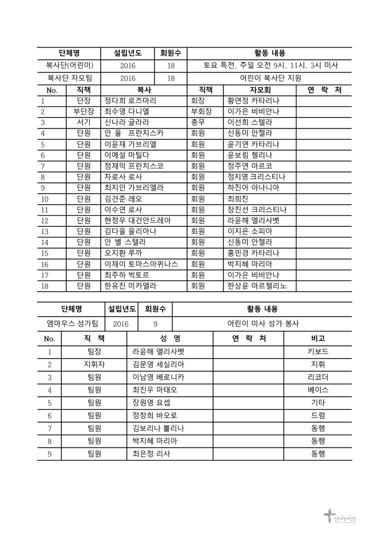 2026년 6기 본당활동 단체별 회원명단 - 어린분과