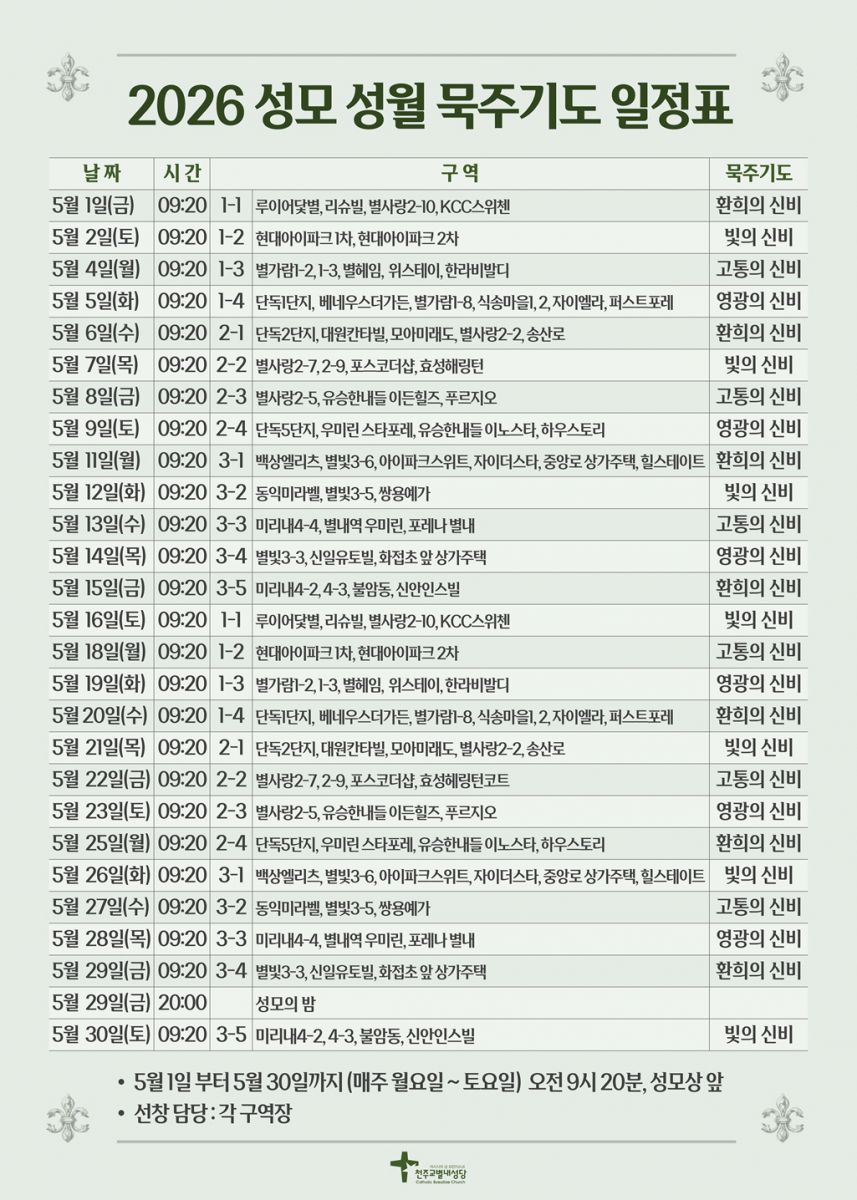 ■ 2026년 성모 성월 묵주기도 일정표