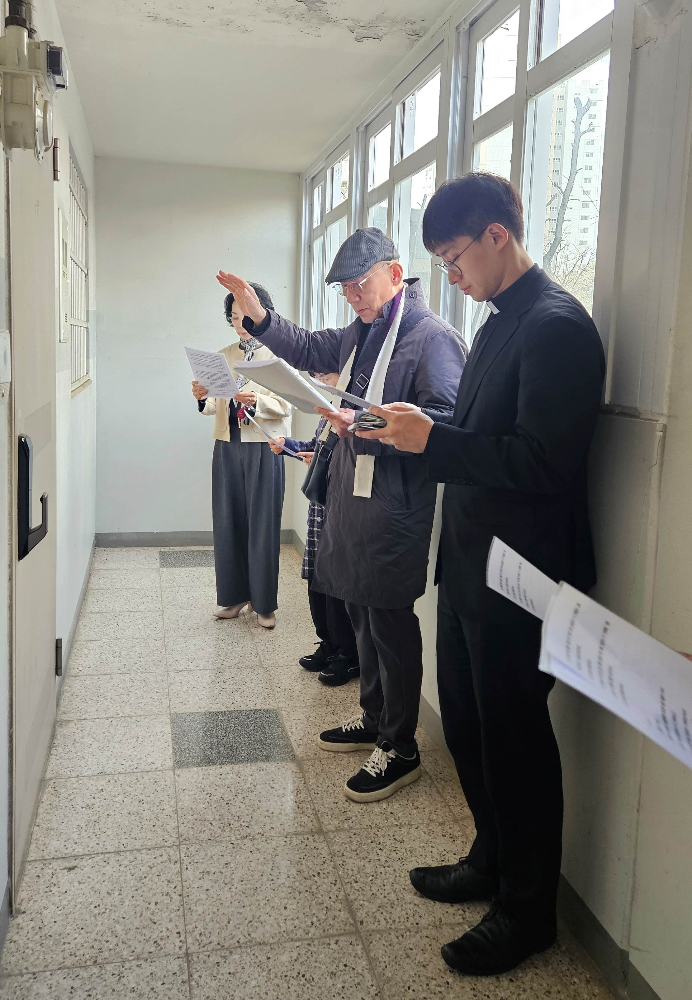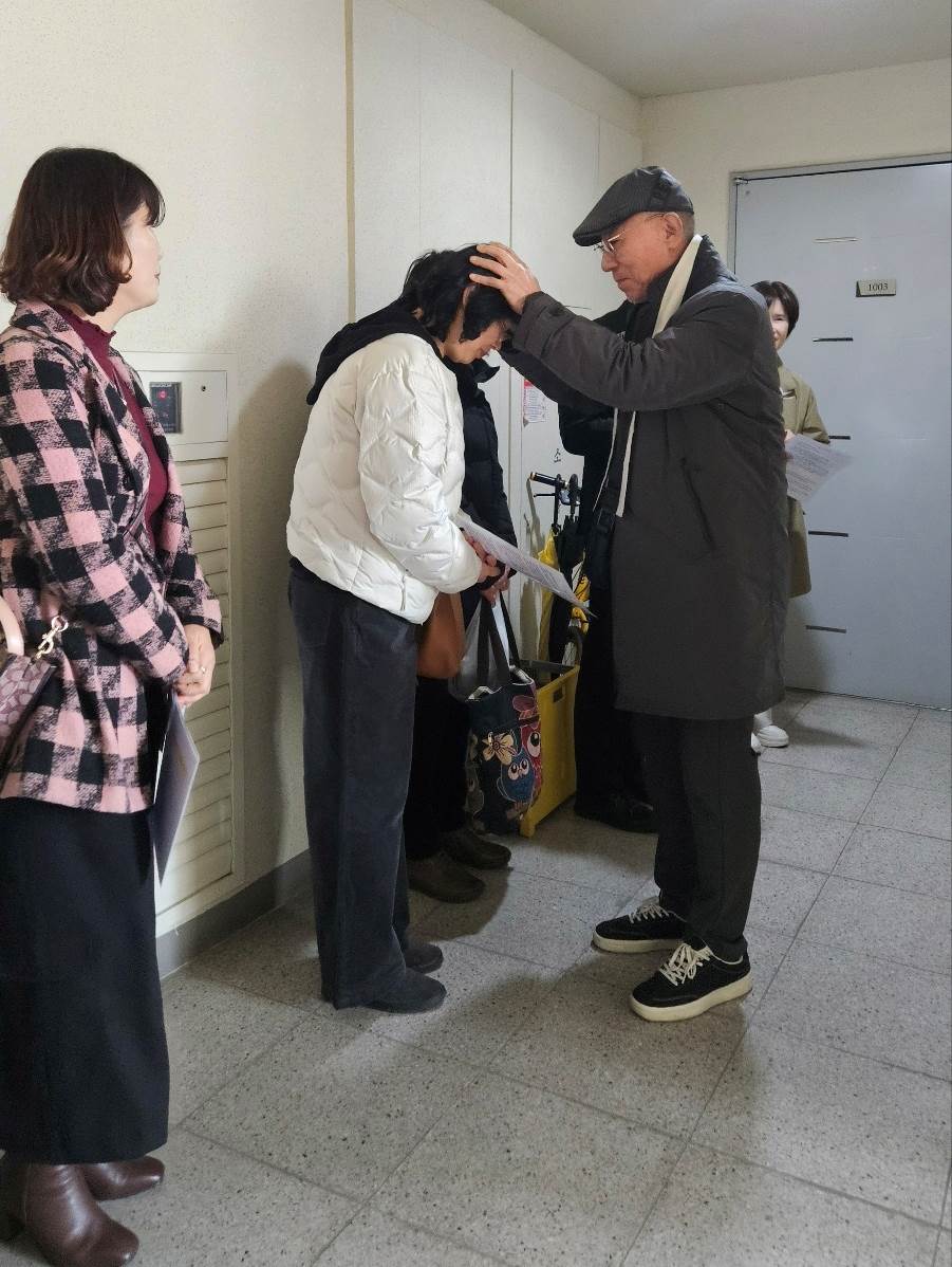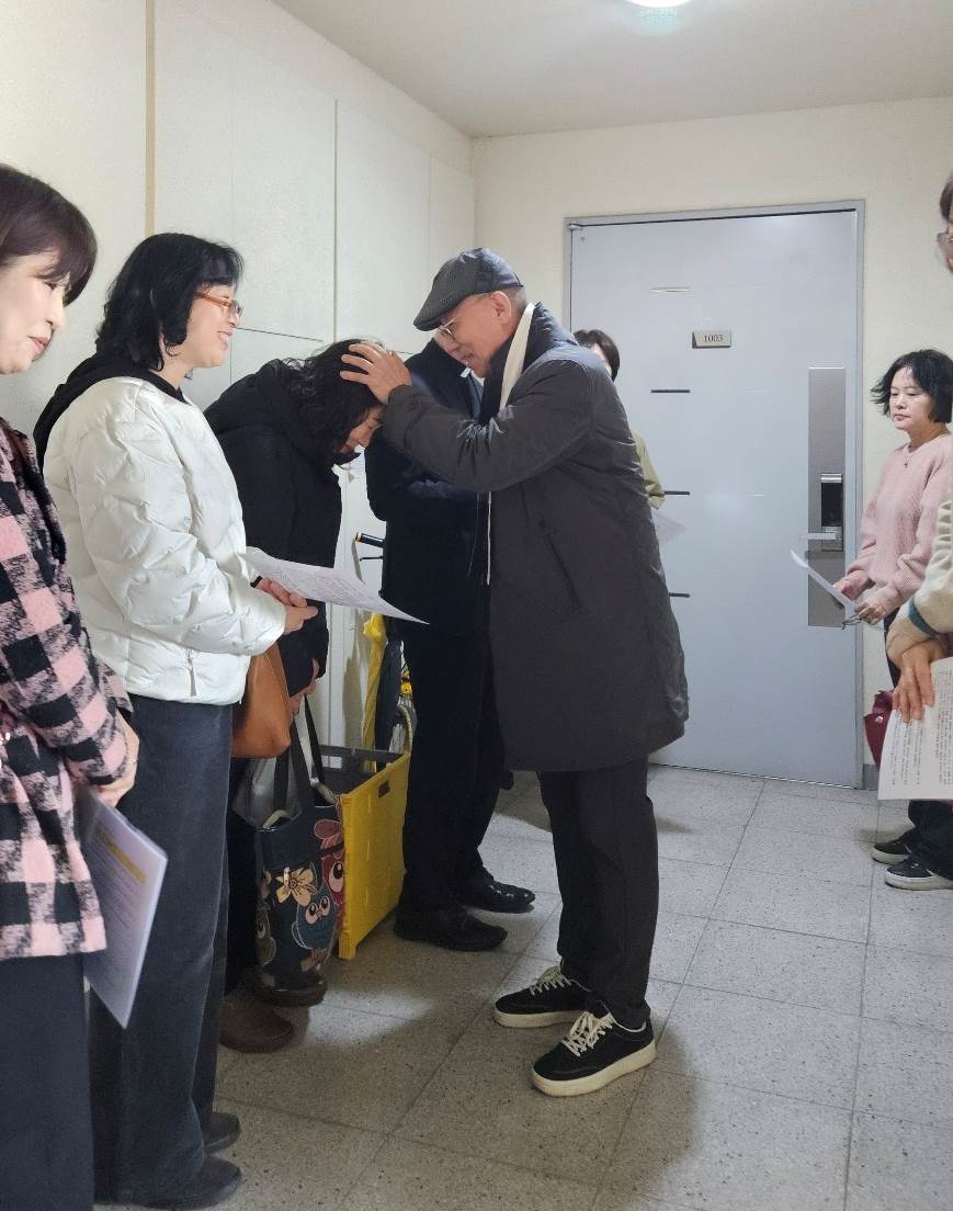 교우들의 집 앞에서 같은 마음으로 축복과 위로의 기도를 올리셨습니다.