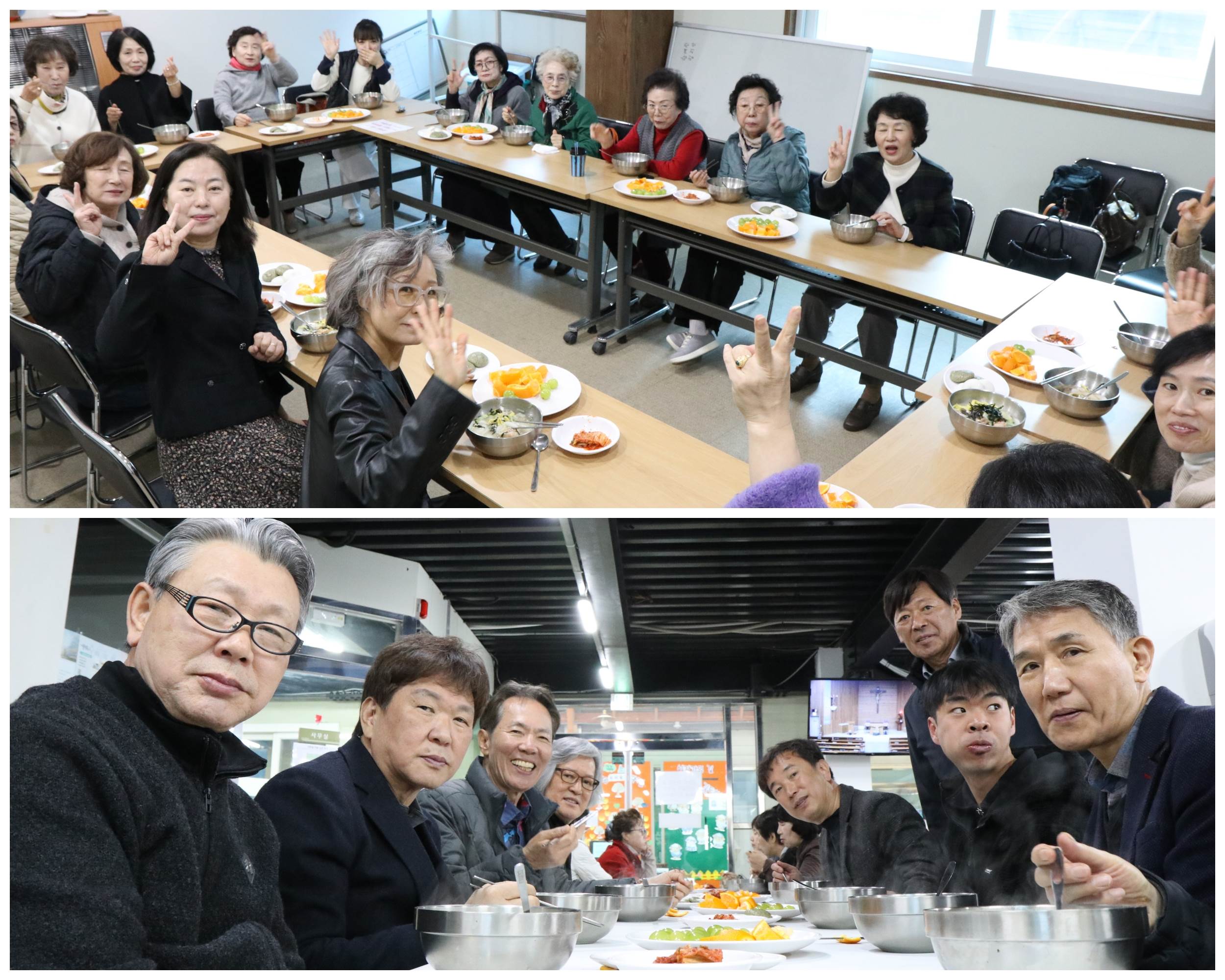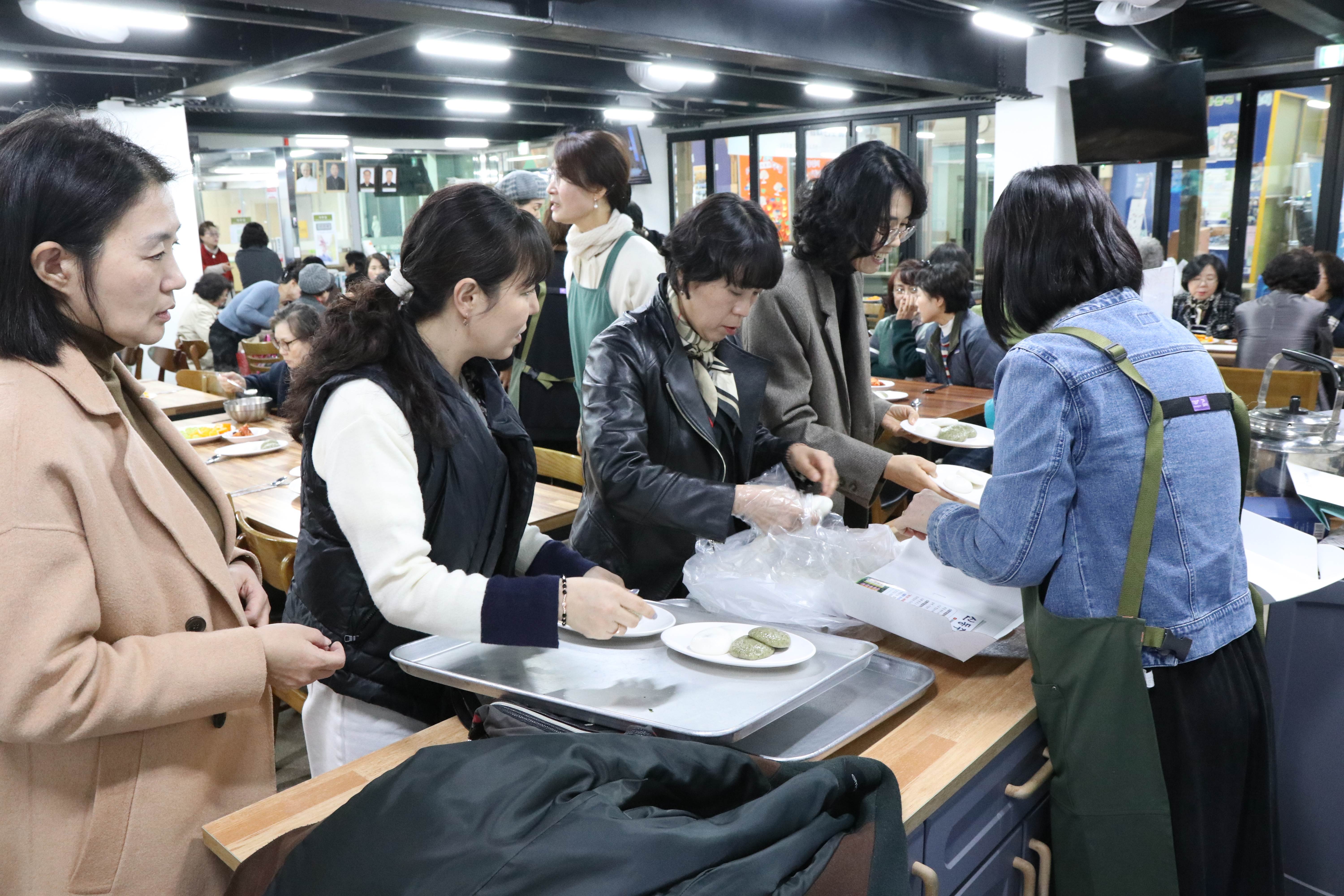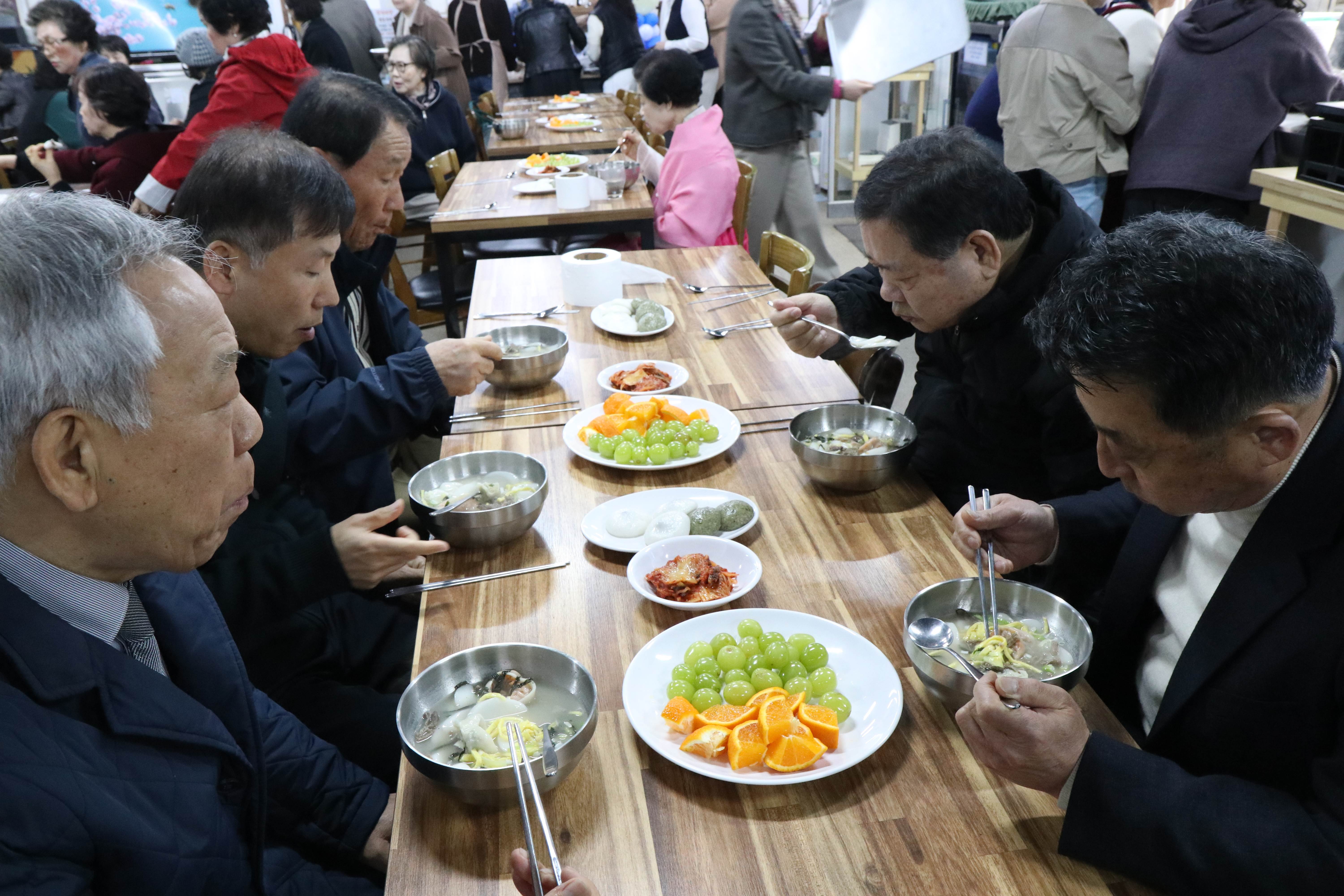 주안뜰과 교육실에서 사골떡국과 기지떡 그리고 과일까지 풍성하게 먹으면서