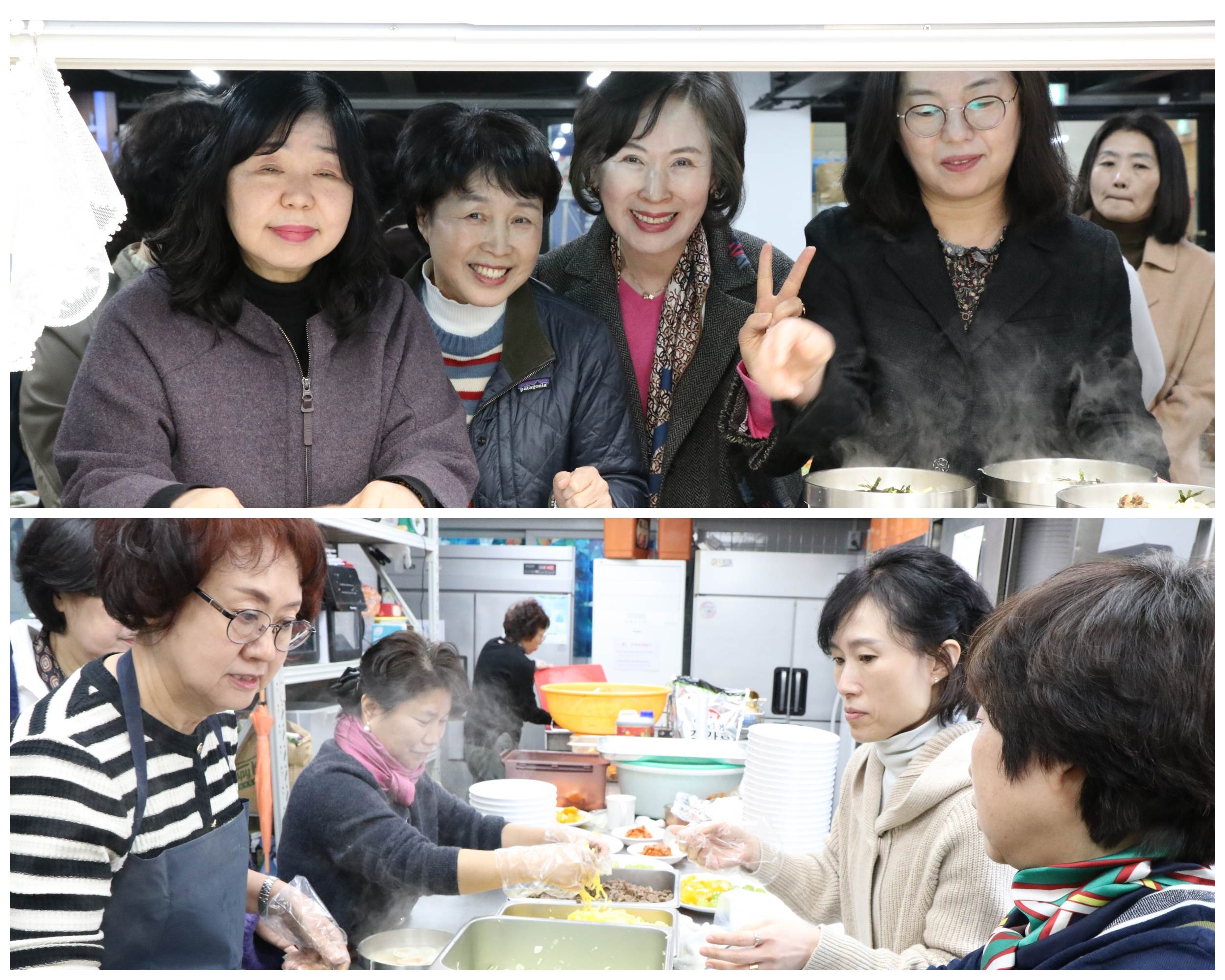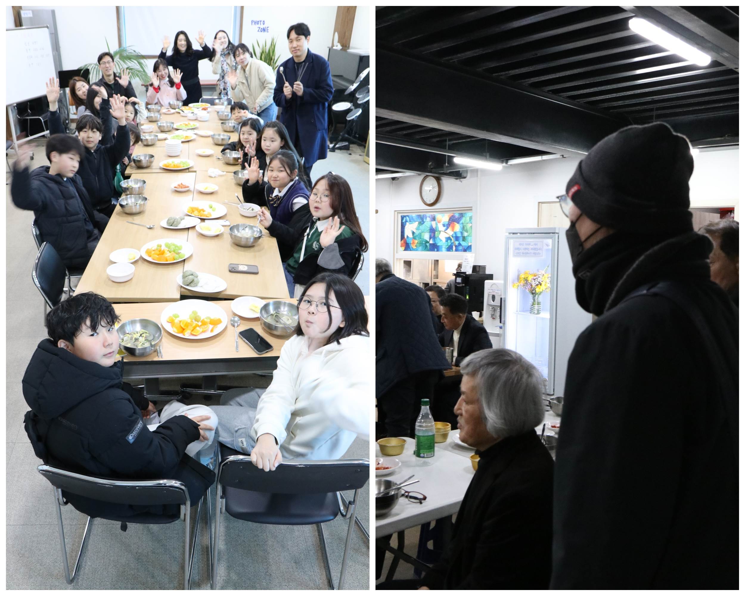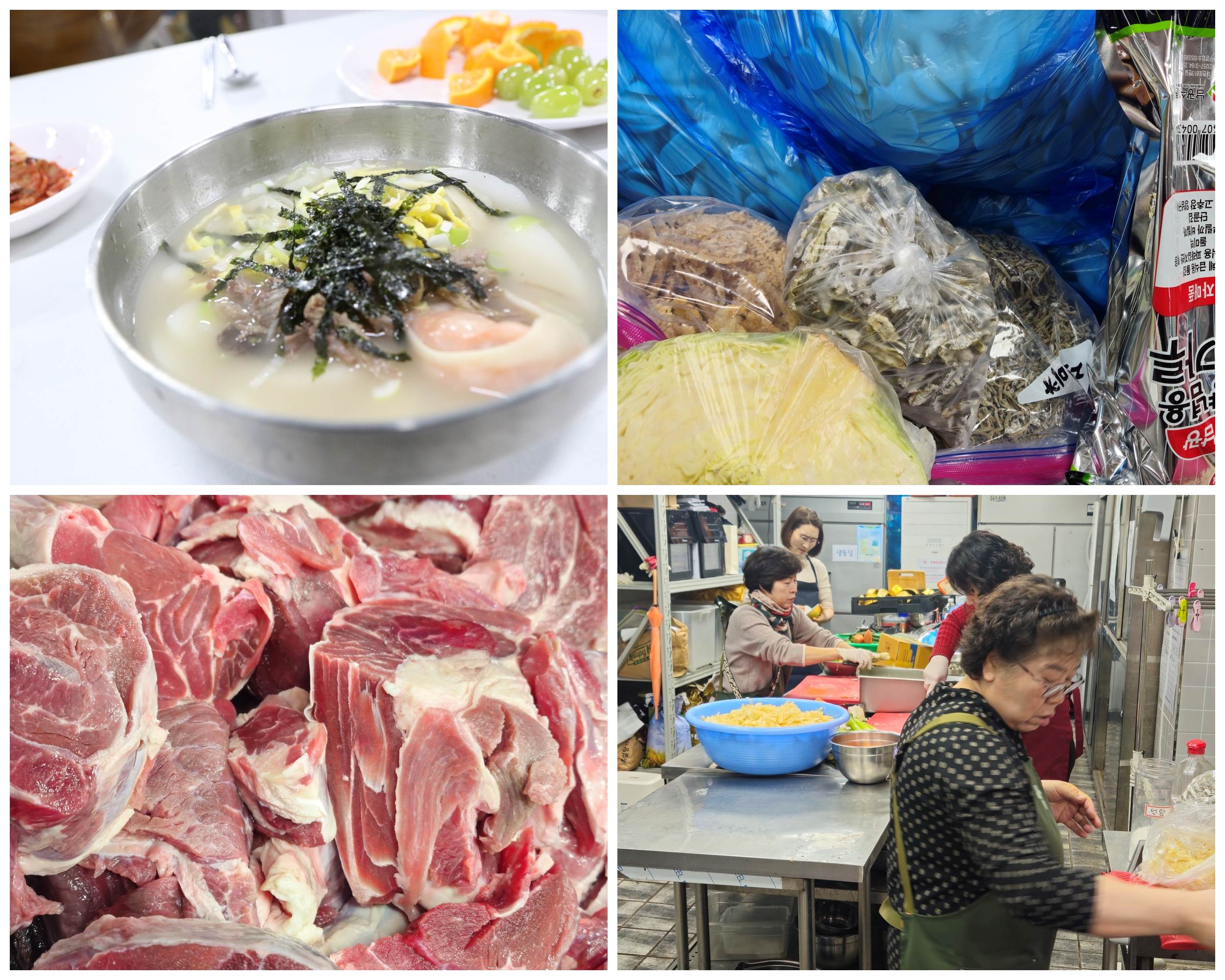 주안뜰과 교육실에서 사골떡국과 기지떡 그리고 과일까지 풍성하게 먹으면서