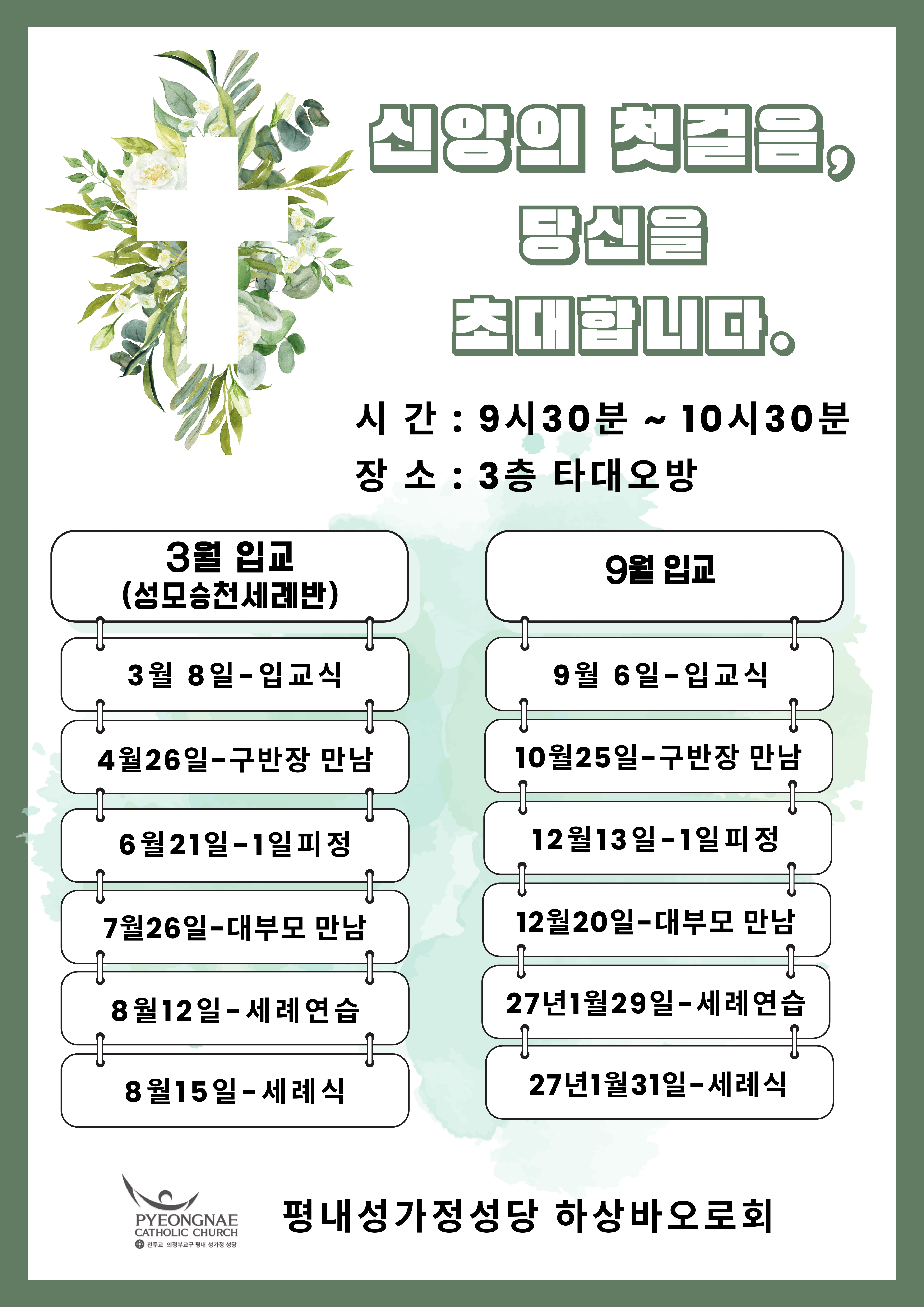 - 매월 마지막 주 수요일 오전 10시 미사