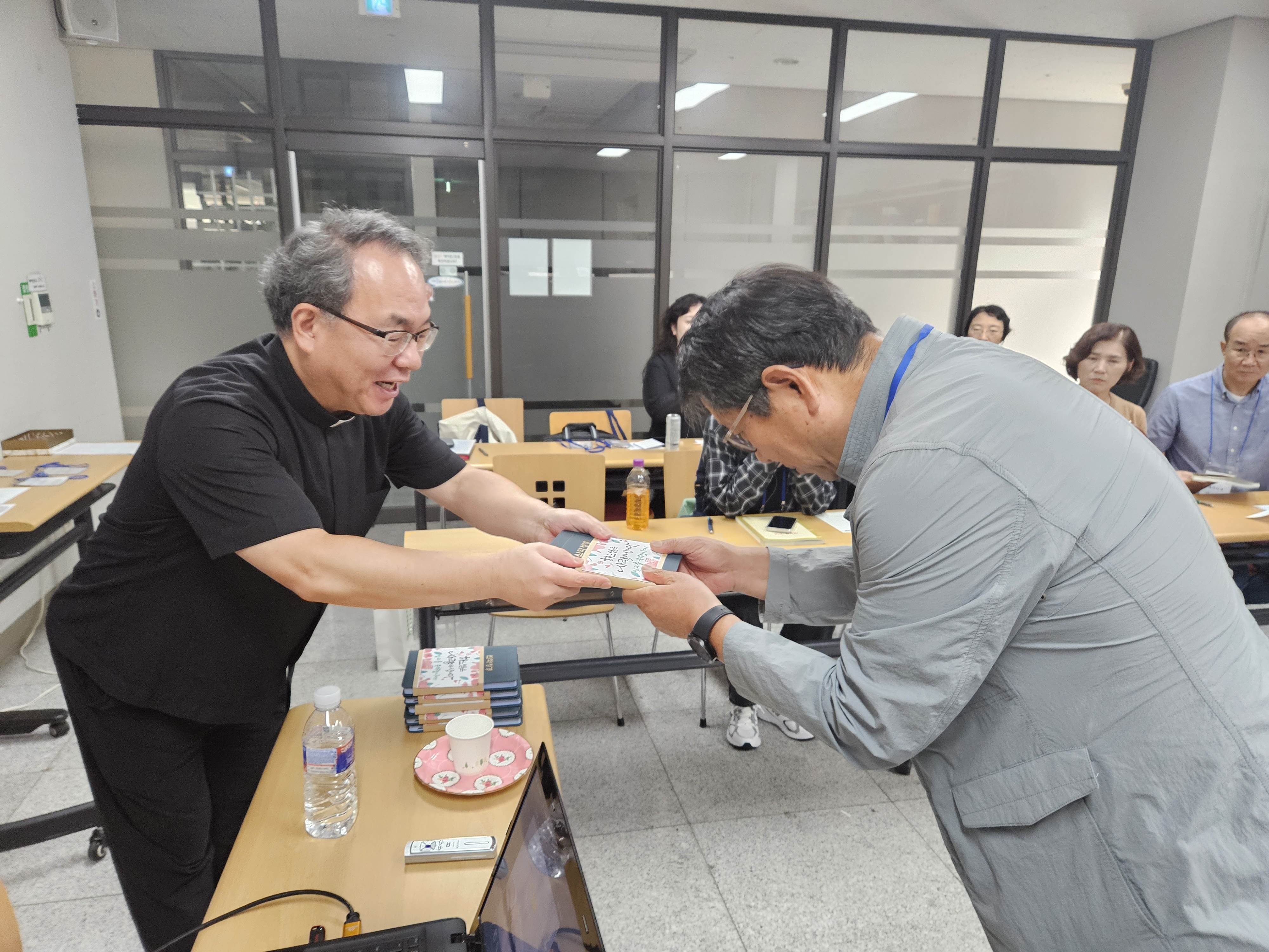 신앙공동체의 일원으로 새로운 여정을 시작하는 예비신자들께, 공동체를 대표하여 사목회장님과 부회장님의 성경전달식이 있었습니다.