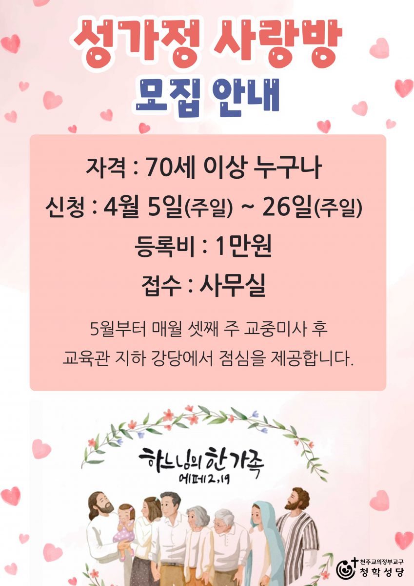 성가정 사랑방 모집 안내