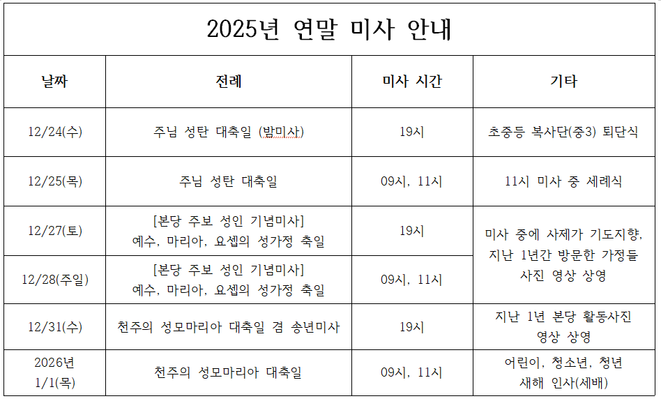 2025년 연말 미사안내