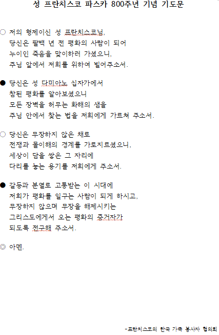 성 프란치스코 파스카 800주년 기념 기도문 (4월 미사 후 기도)