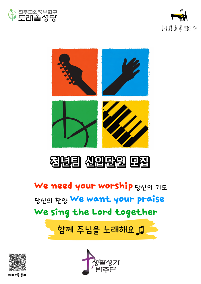 생활성가반주단 청년 봉사자를 모집 합니다.