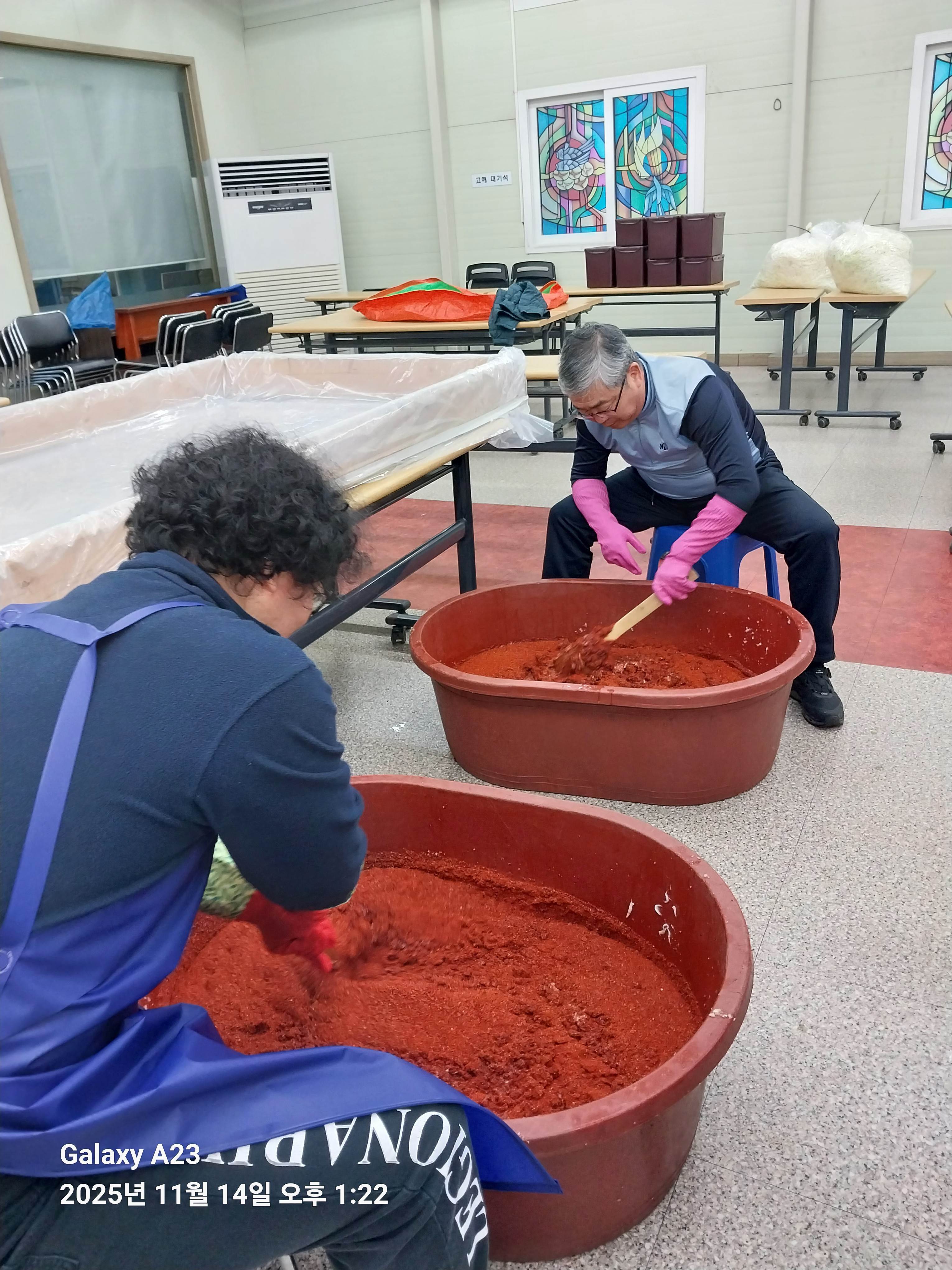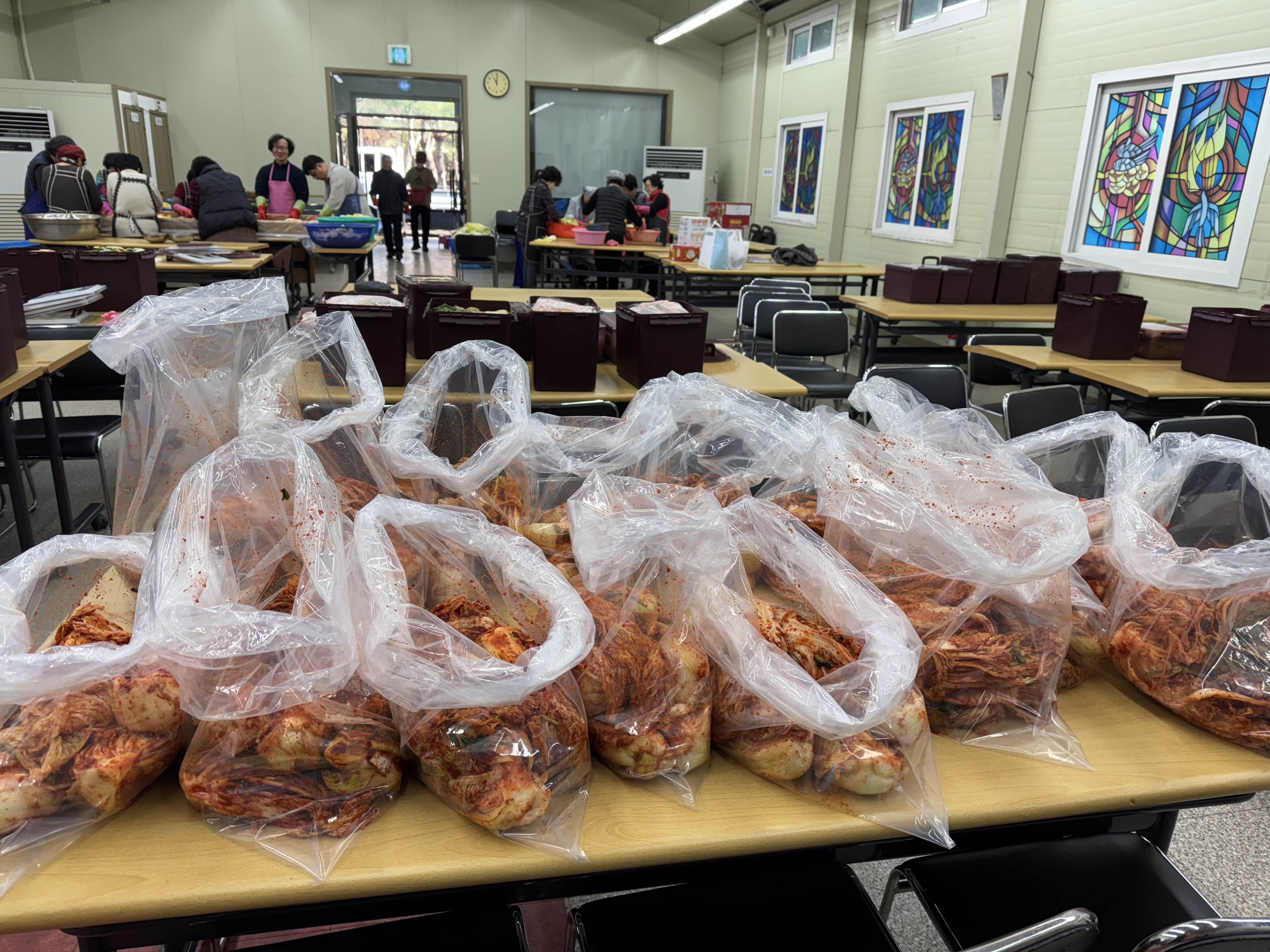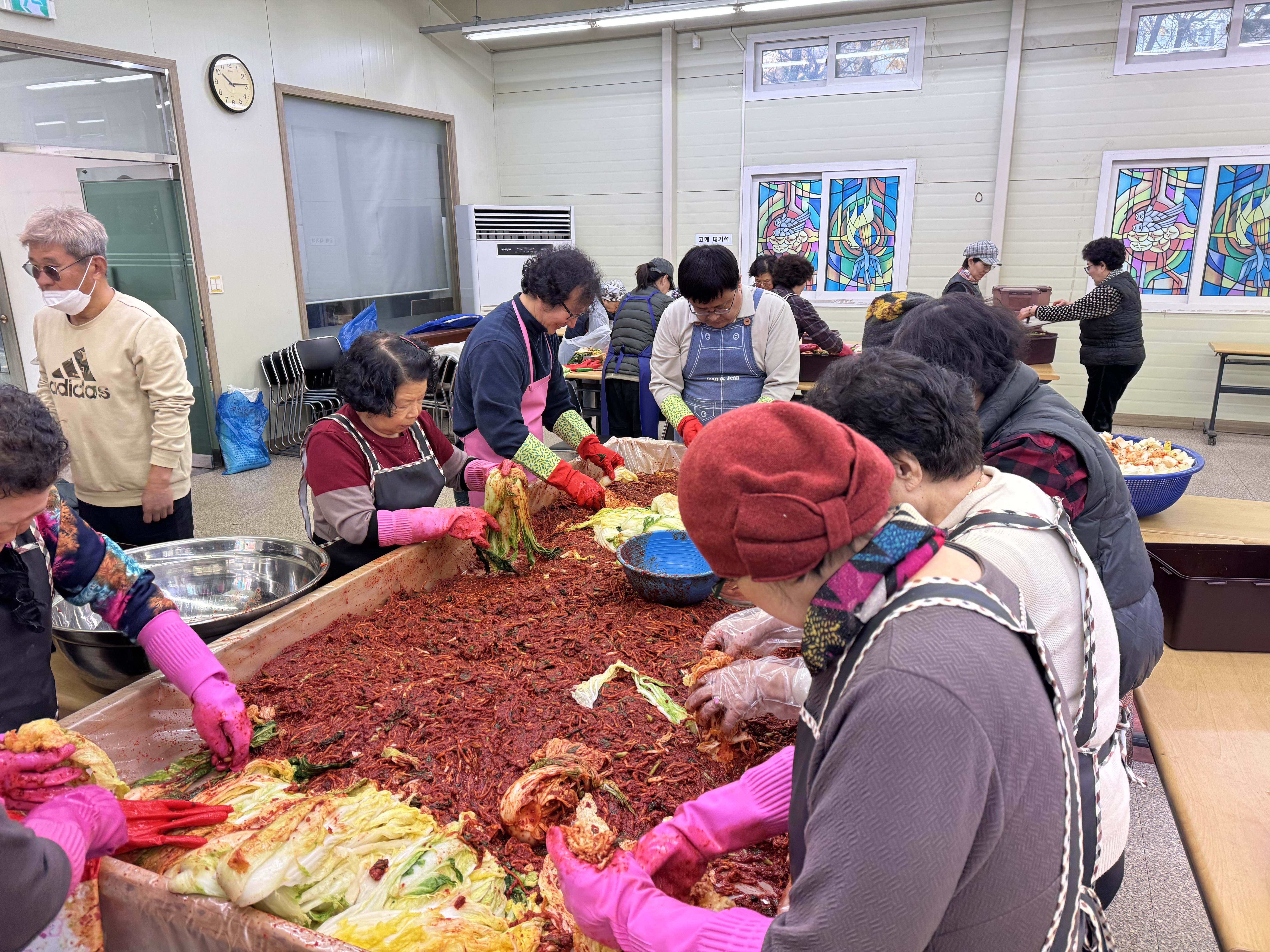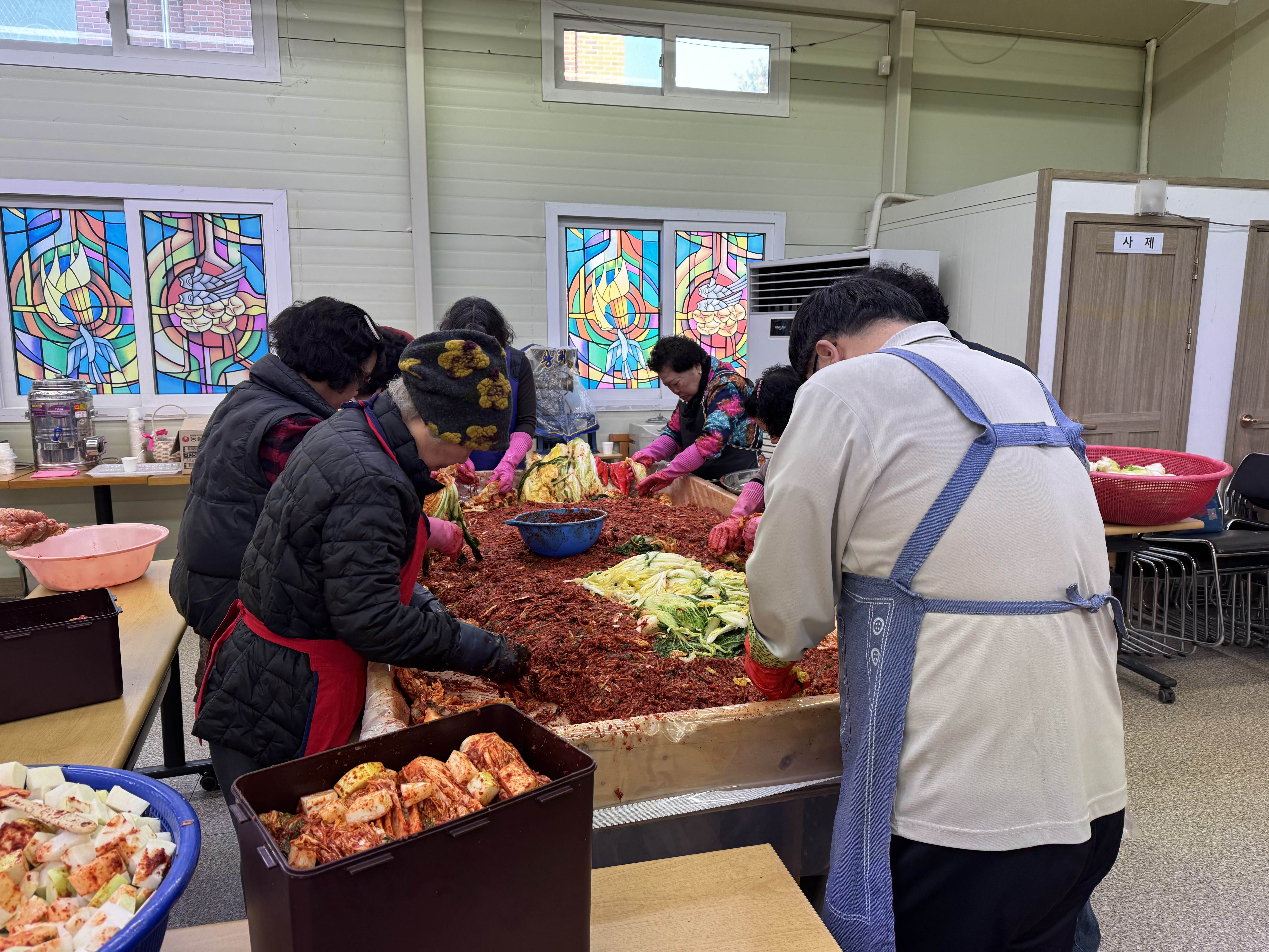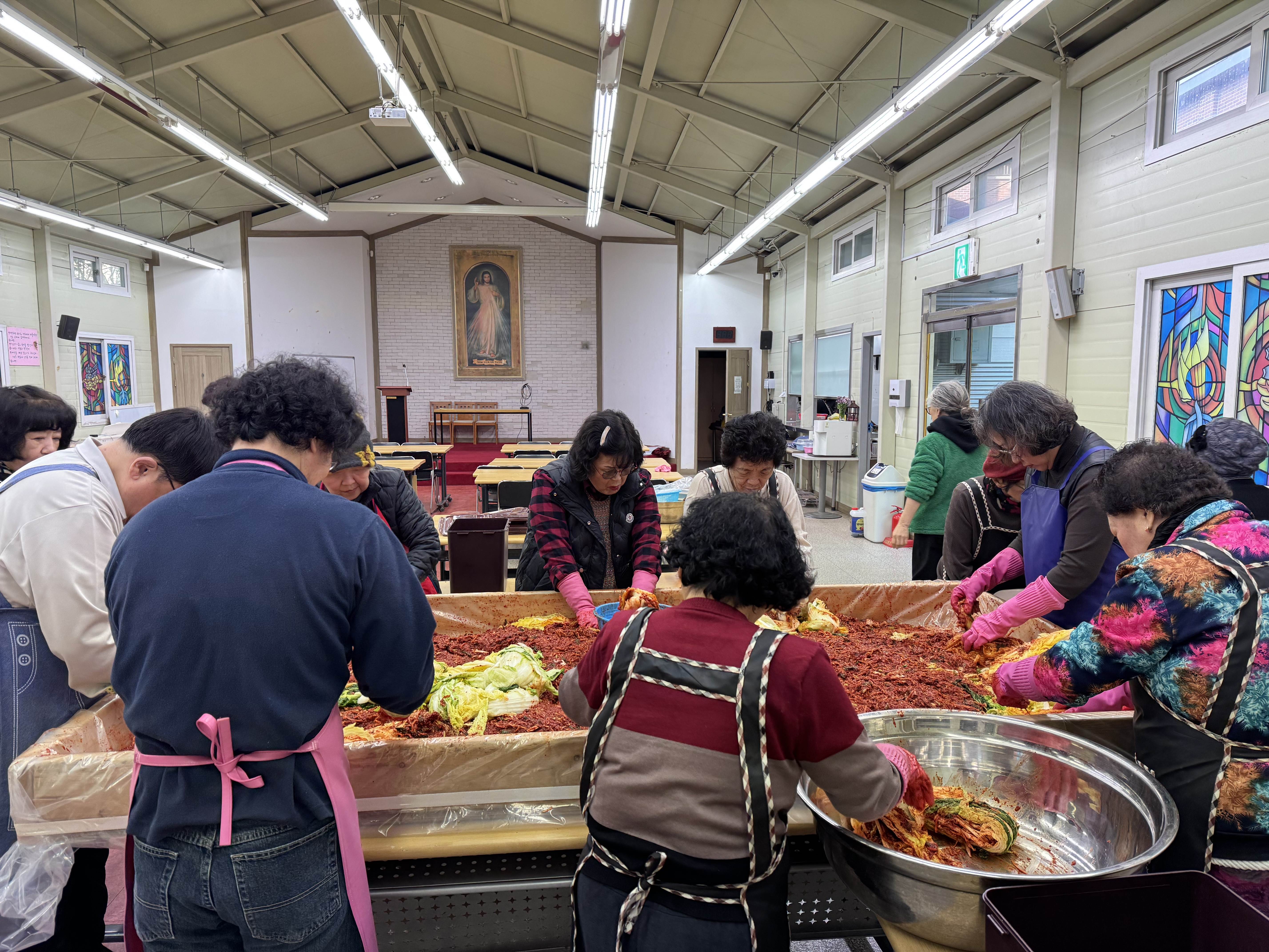 어려운 이웃들에게 나눔도 하고 성당식구들 1년동안 맛있게 먹을 김치 만드시느라 구역장님들 신부님 그리고 많은 봉사자님들 고생 많으셨습니다.