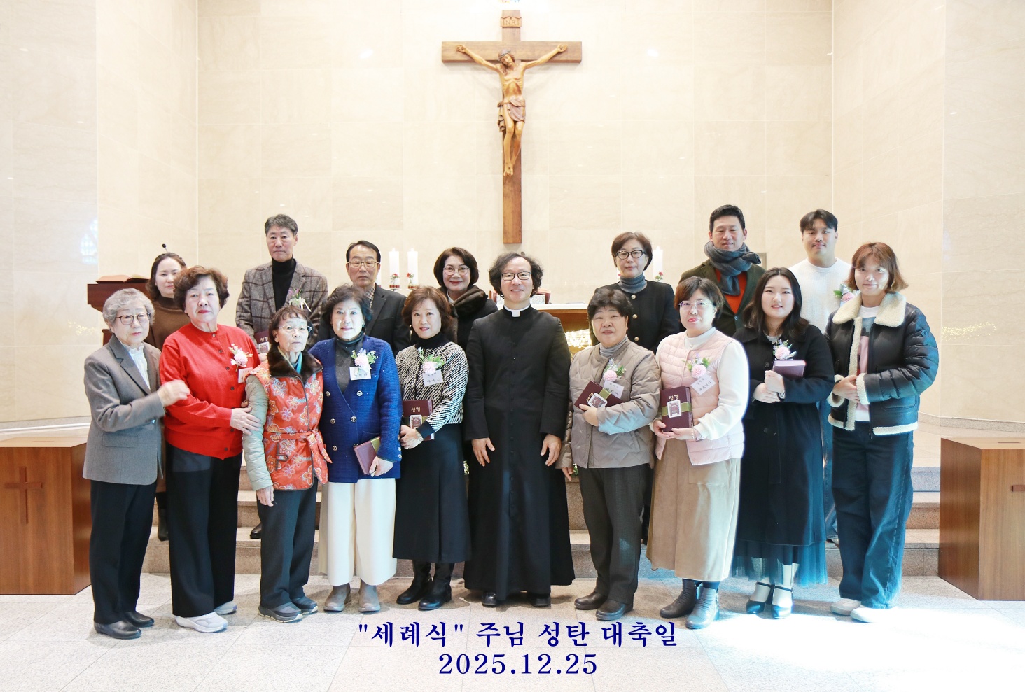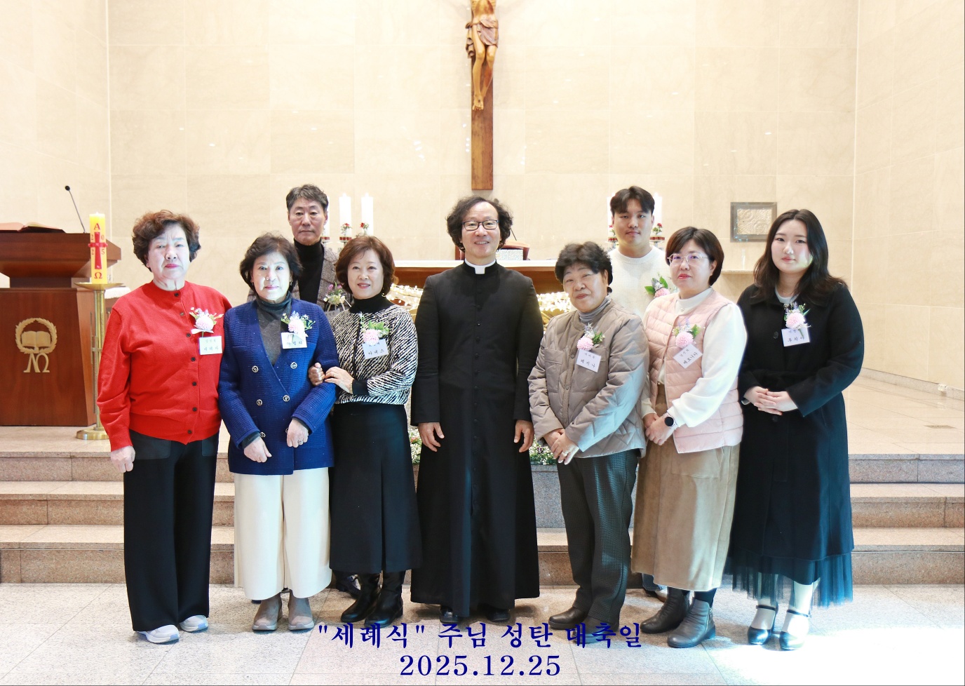 12월 25일 주님성탄 대축일 11시 낮미사에 혼배예식과 8명의 세례식이 있었습니다. 하느님의 자녀로 새롭게 태어나신 8명의 새신자분들을 위하여 축하와 기도 드립니다.^^
