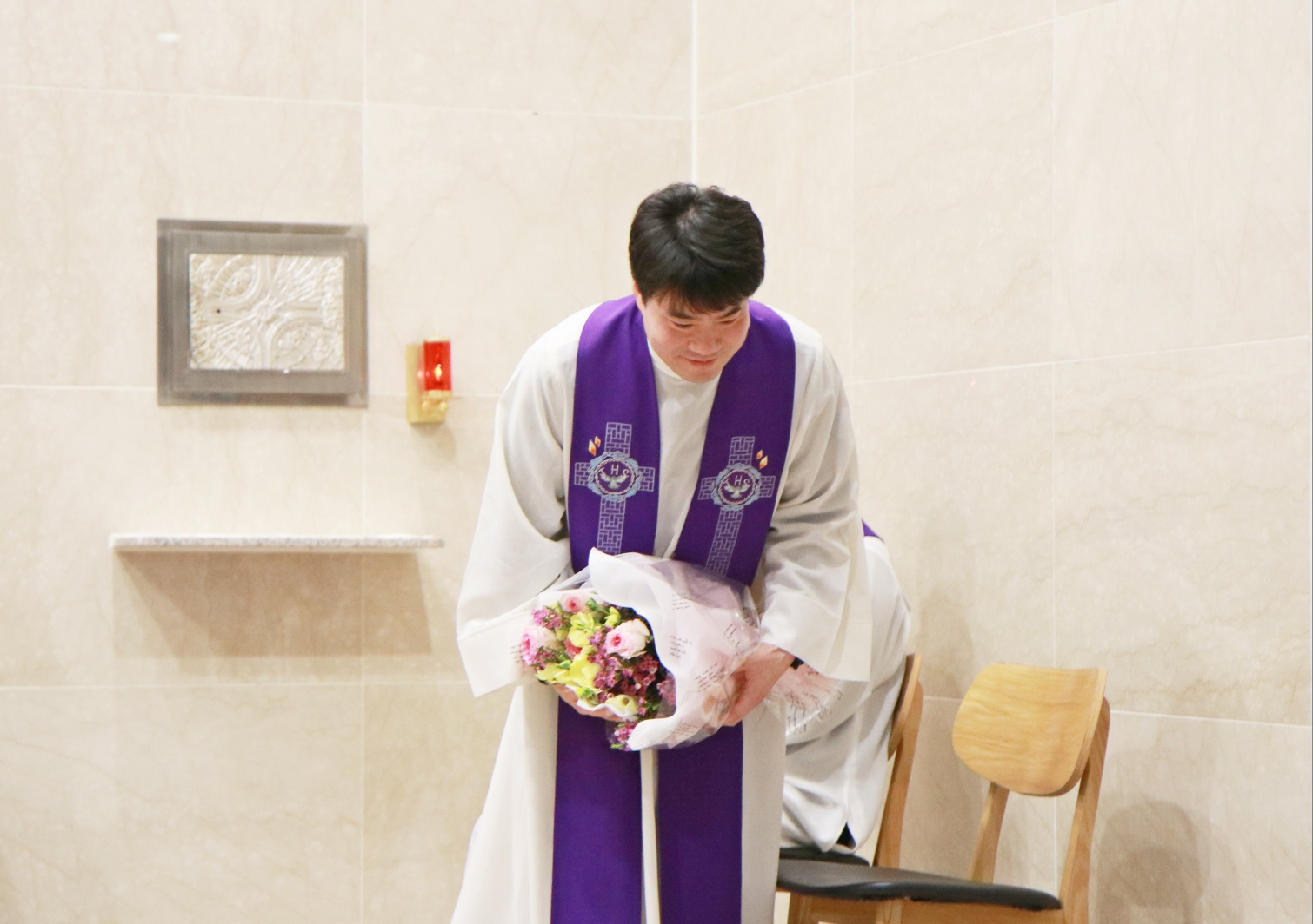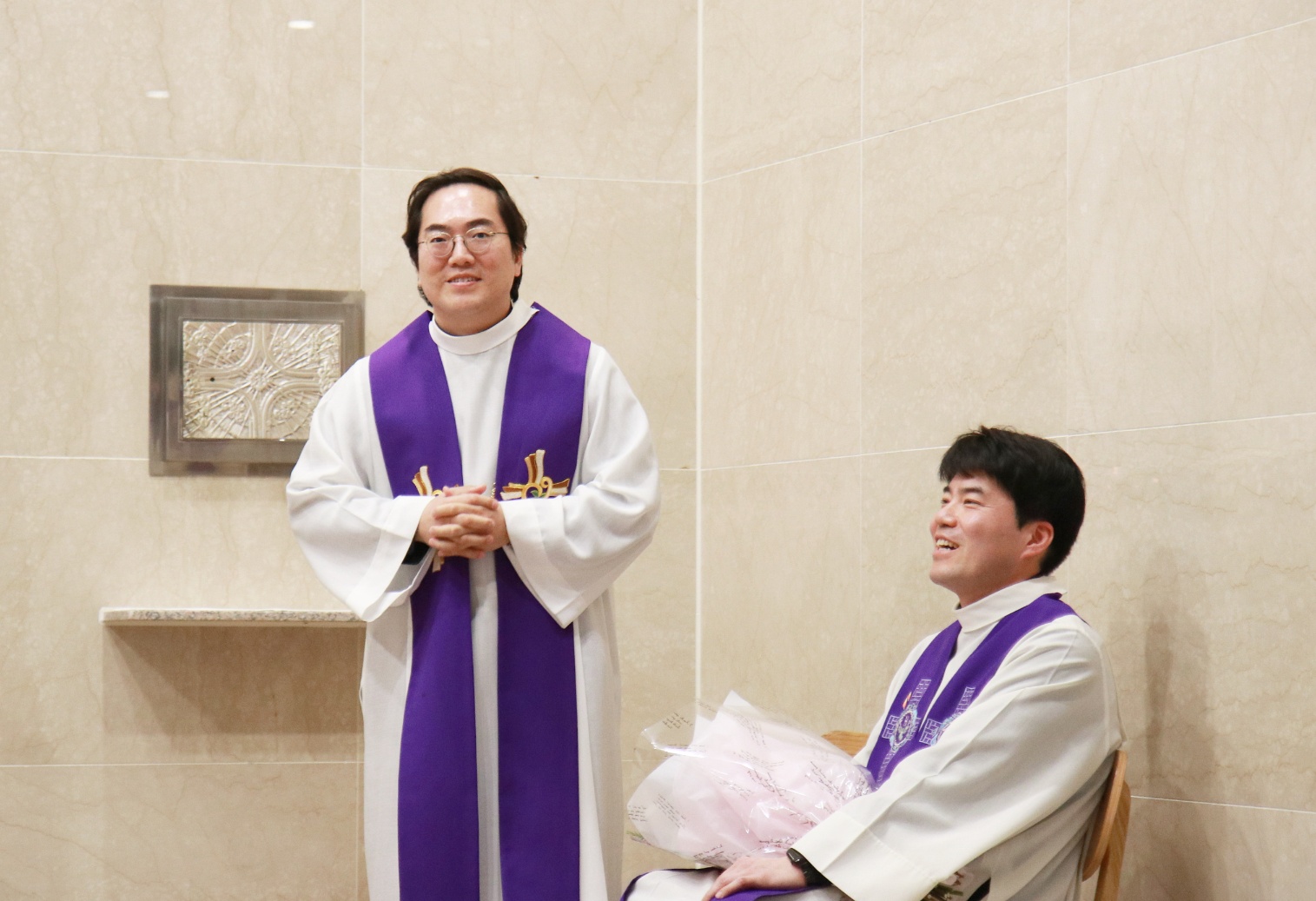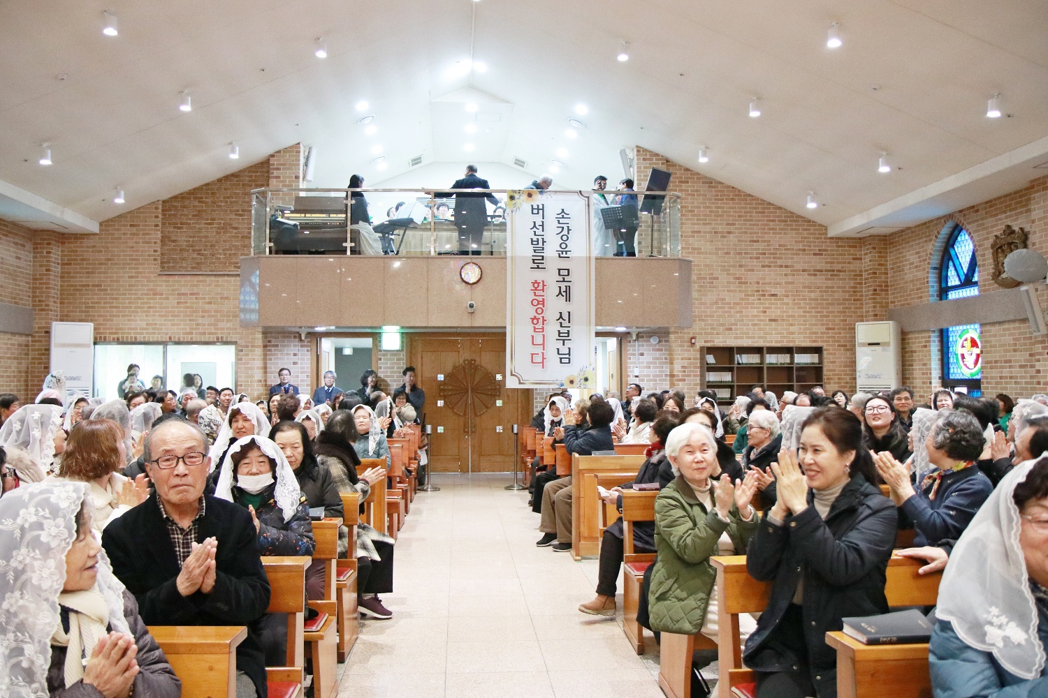 2월 22일 교중미사 중에 손강윤 모세 주임신부님의 환영식이 있었습니다. 첫주임으로 발령 받으신 주임신부님을 축하해 주기 위해 오신 다섯분의 동기 신부님과 손님신부님이 함께 공동집전 하셨습니다. 안나회 어머님께서 꽃다발 증정식 하시고 성가대에서 특송 부르며 신부님을 부끄럽게 기쁘게 버선발로 환영해 드렸습니다.^^
