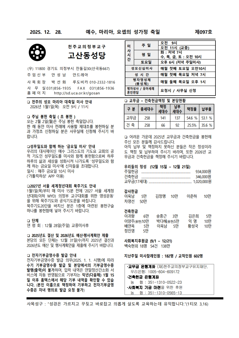 의정부교구 주보. 한국 성직자들의 수호자 성 김대건 안드레아 사제 순교자 경축 이동