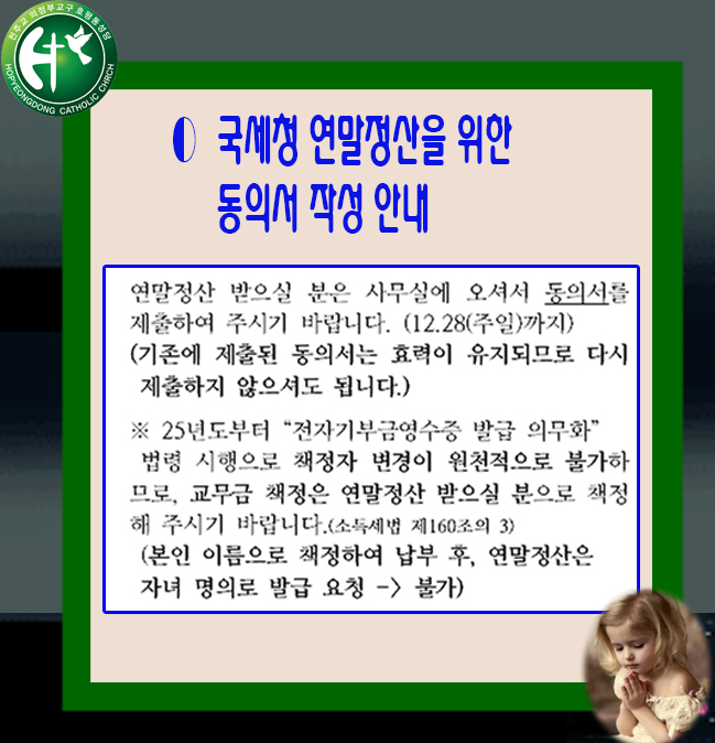 국세청 연말정산을 위한 동의서 작성 안내