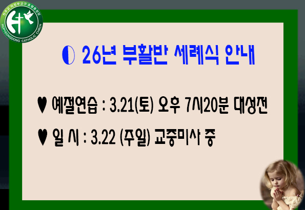 26년 부활반 세례식 안내