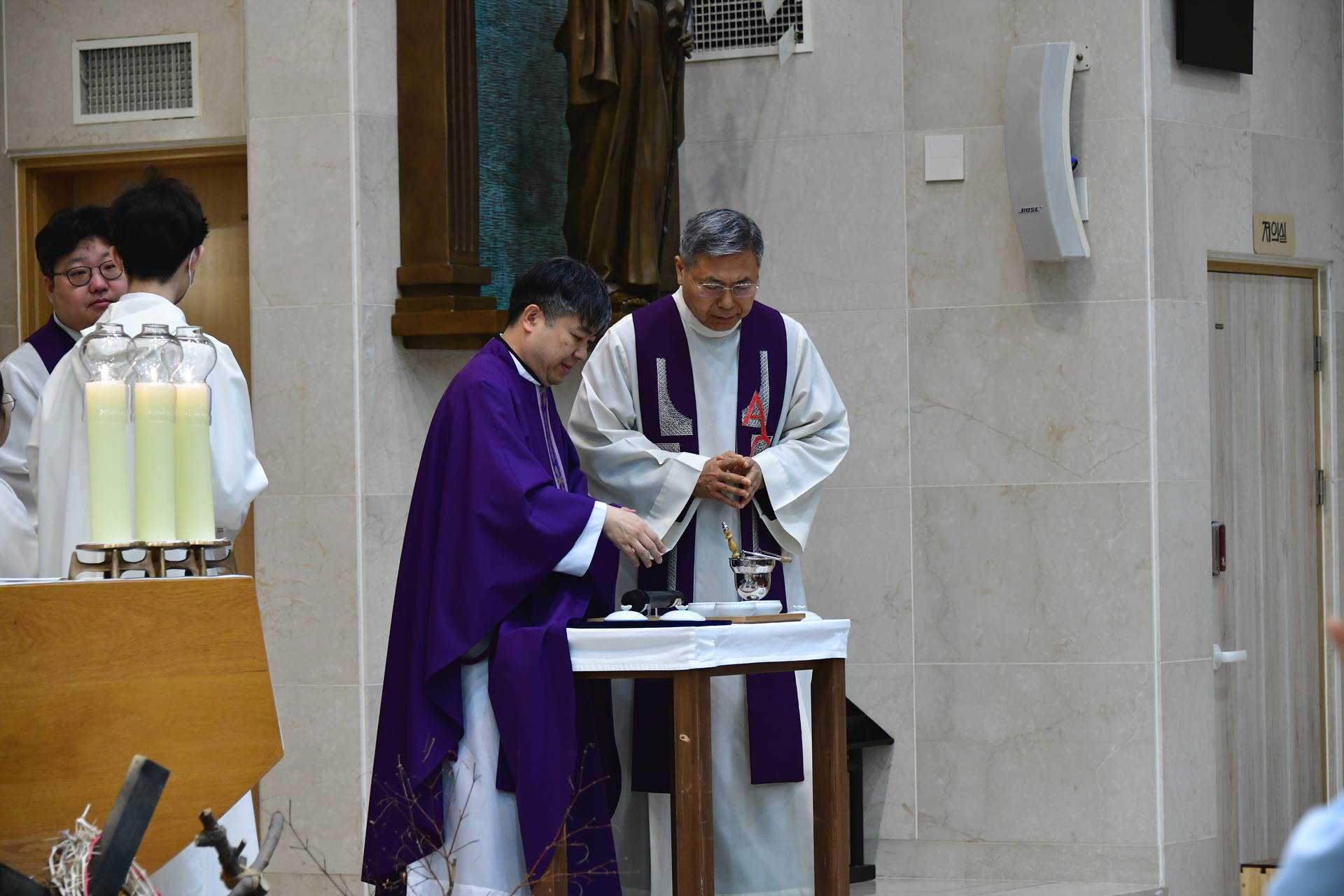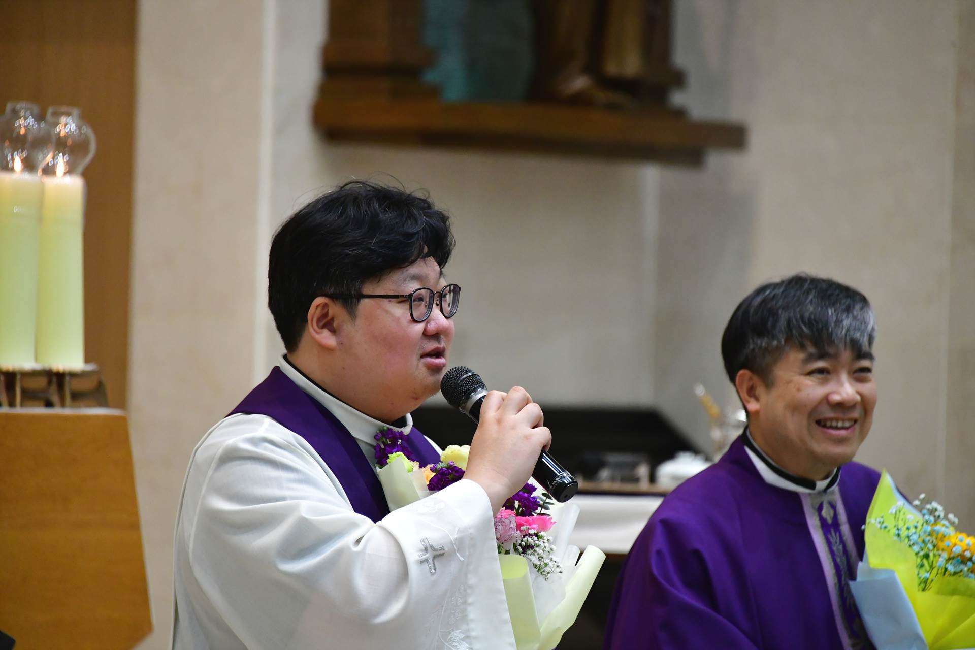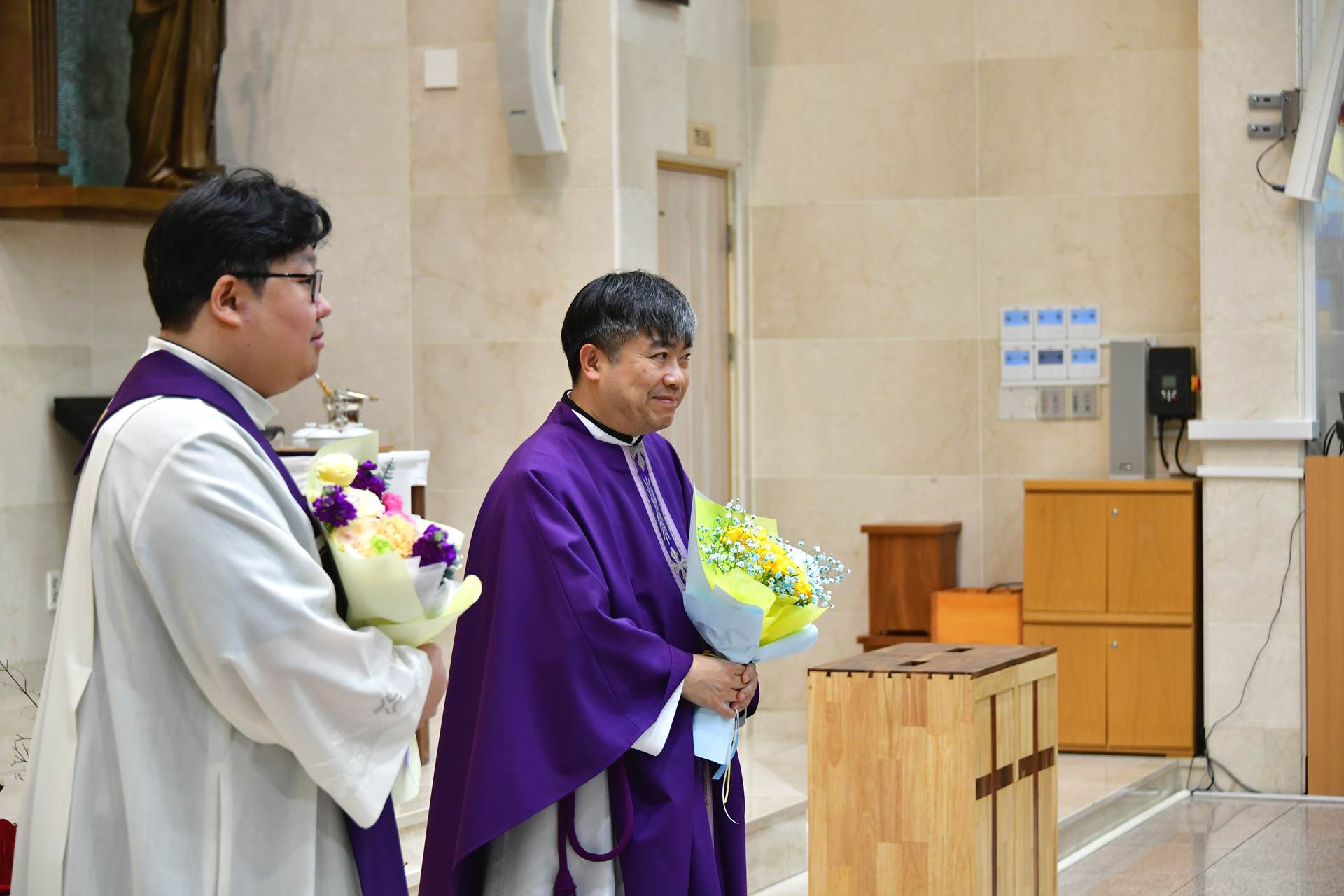 2026년 2월 22일 교중미사 때 새로오신 변승식 요한보스코 주임신부님과 김주헌 토마 부주임신부님의 환영행사가 진행되었습니다.