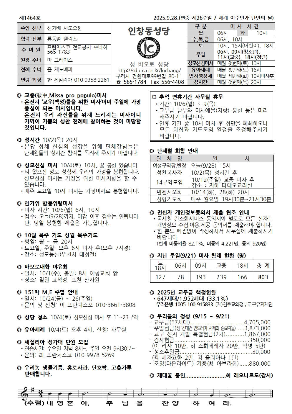 연중 제26주일 / 세계 이주민과 난민의 날