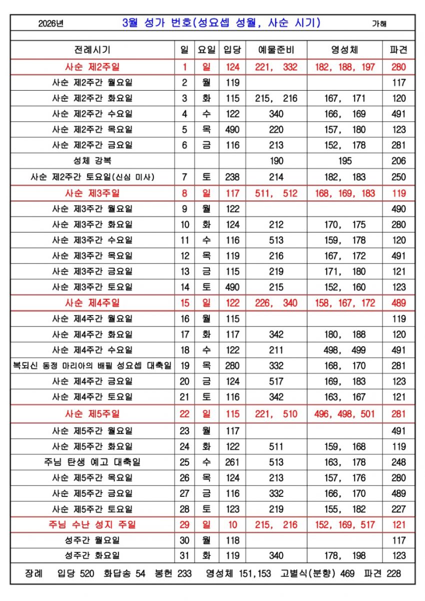 3월 성가 안내입니다