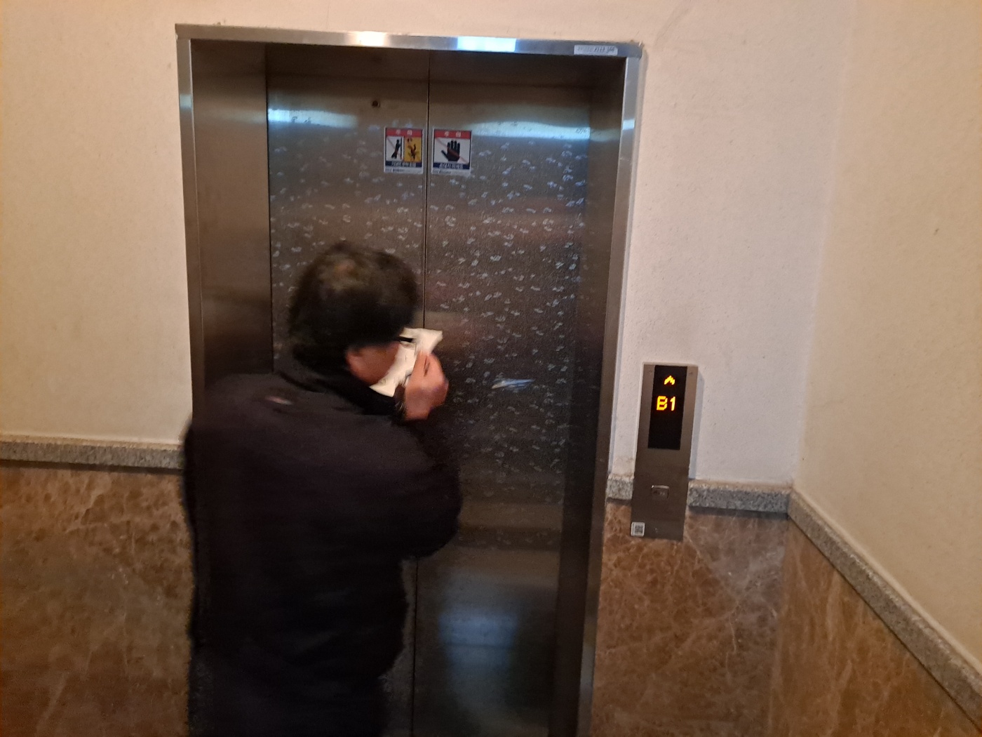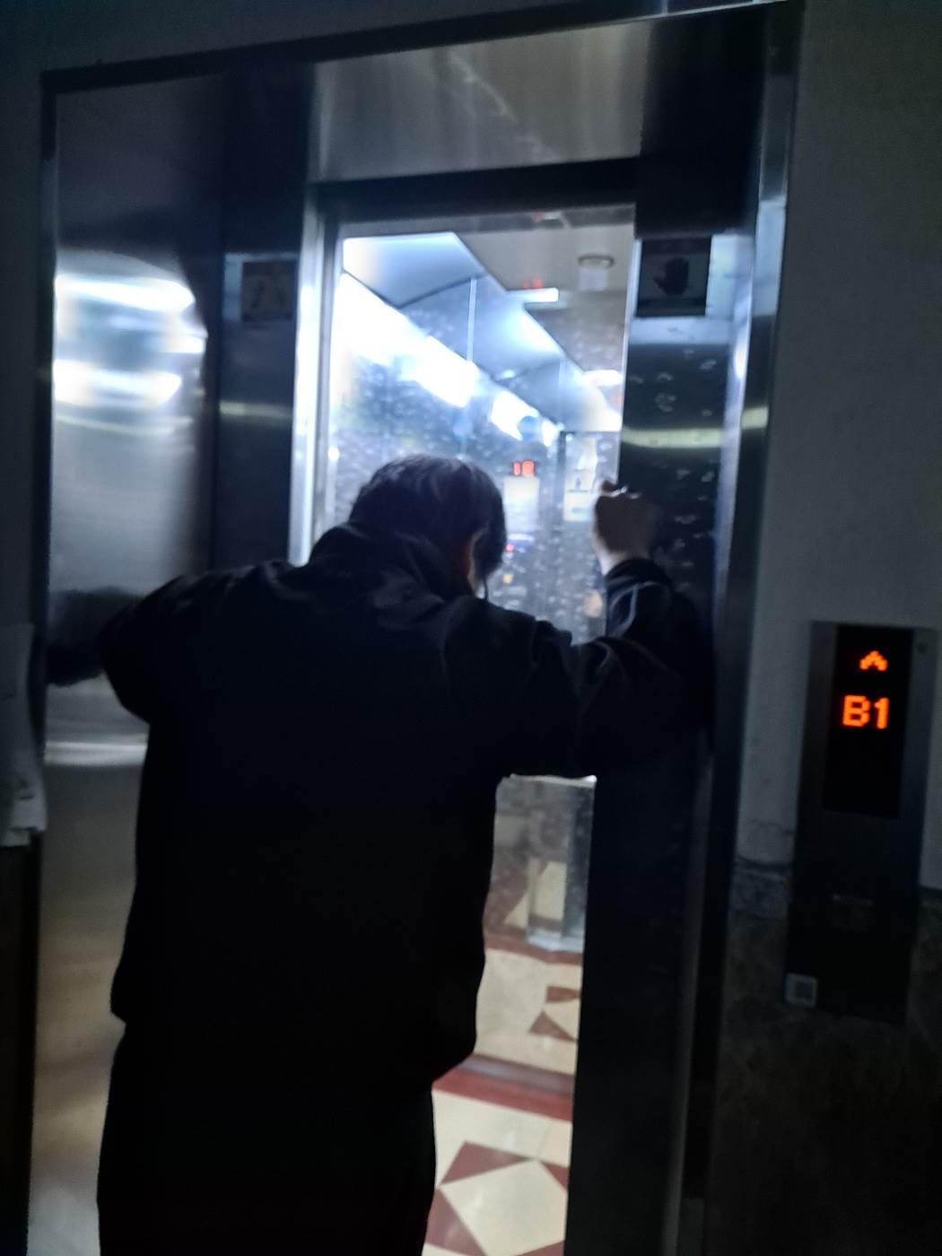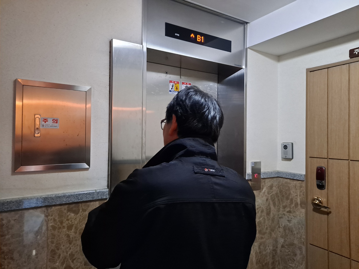 엘리베이터 안쪽 도어 센서 오작동으로 인한 고장이었습니다.