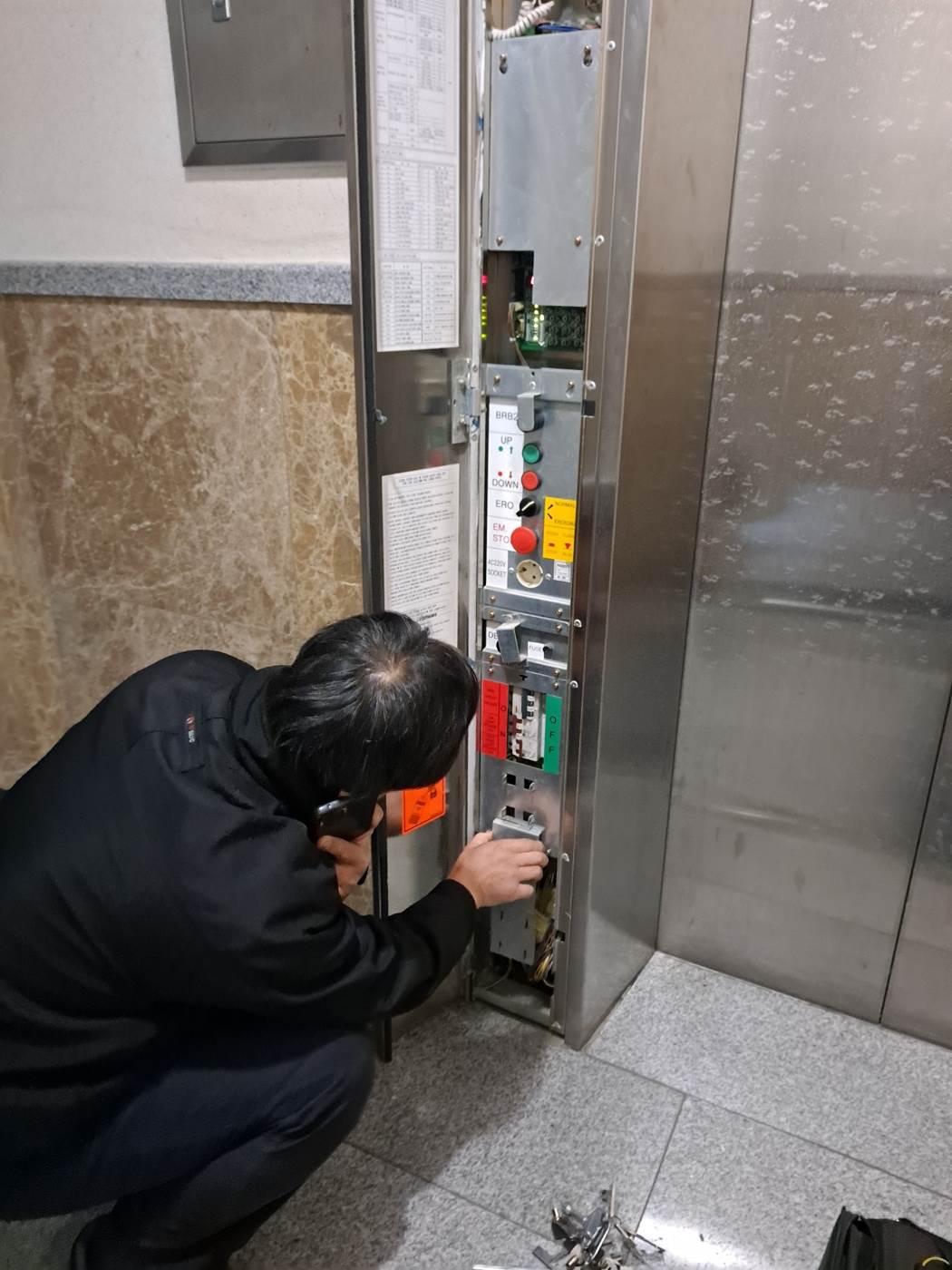 신한엘리베이터 전담 기사가 출동하여 수리 완료하였고, 정상 작동합니다.