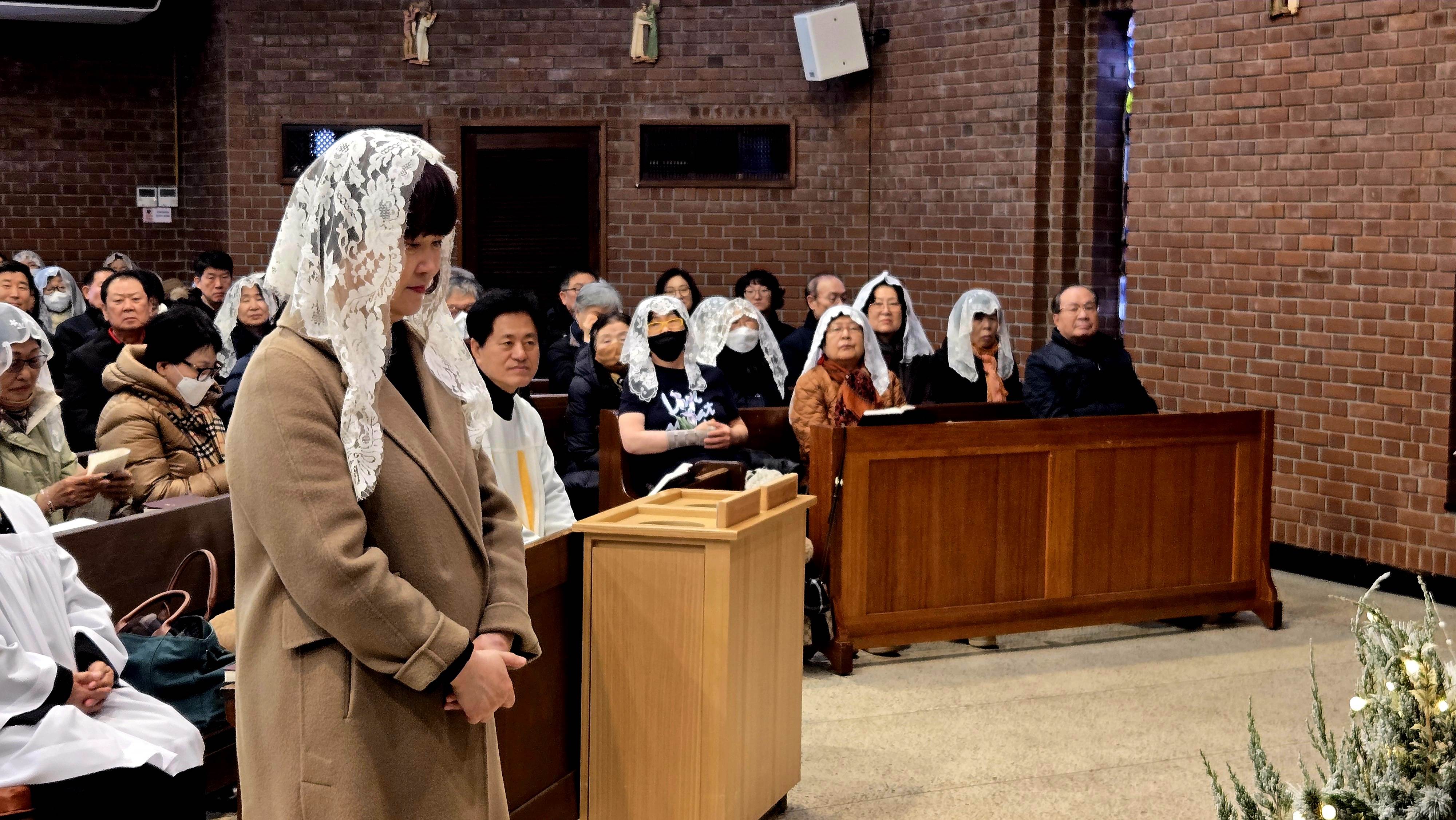 1월 4일 교중미사 중, 오랜 시간 우리 본당 교중미사 반주를 맡아 주신 이영숙 세레나 자매님의 은퇴식이 있었습니다.