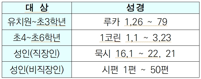 성경 말씀을 가까이 : 24주간(8/31~9/06)