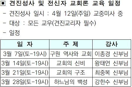 2026년도 견진성사 및 전신자 교육(교회론) 일정 안내