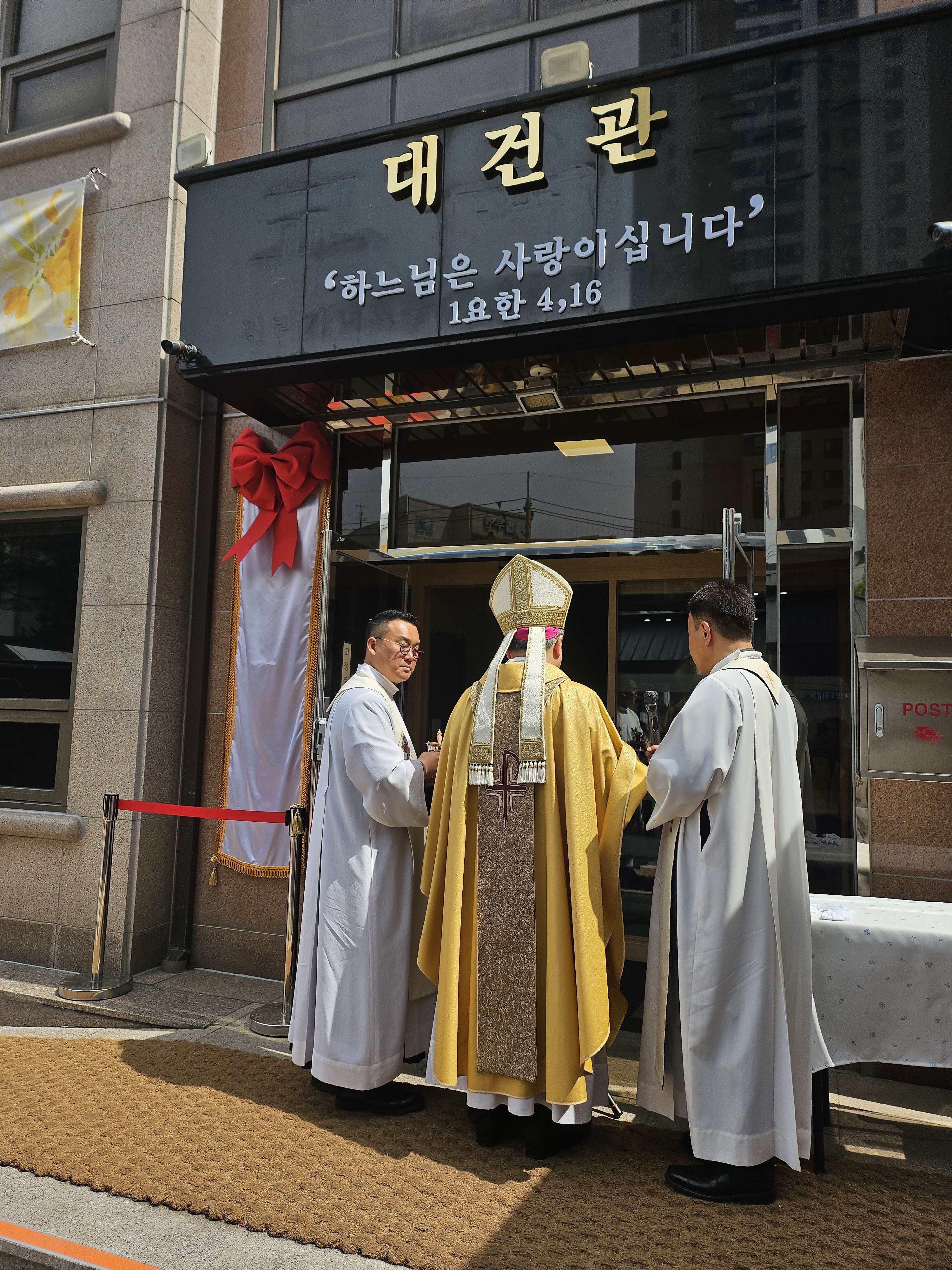 주님 부활 대축일에 주교님께서 방문 하시어 본당 대건관.사제관 축복식이 있었습니다
