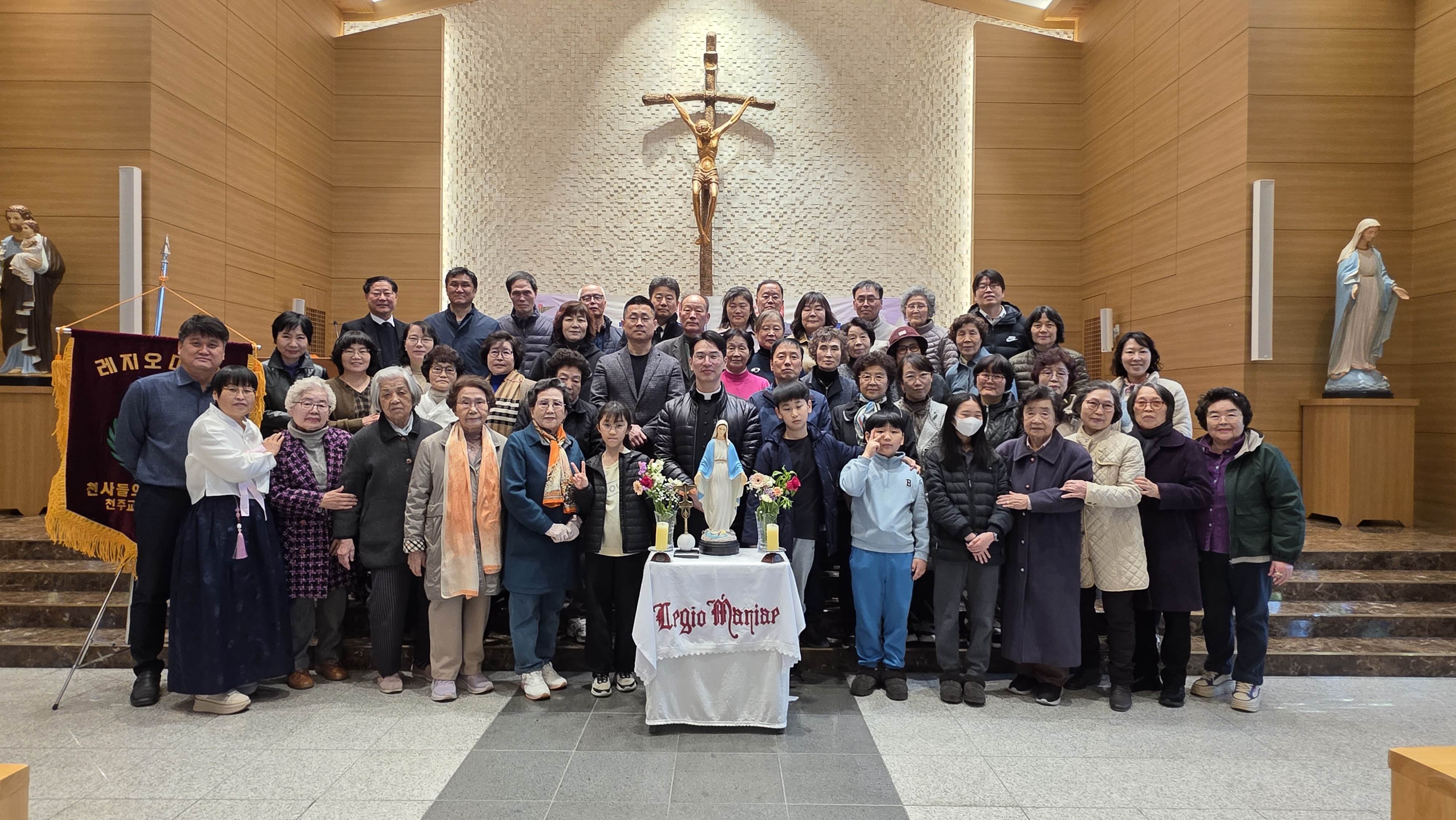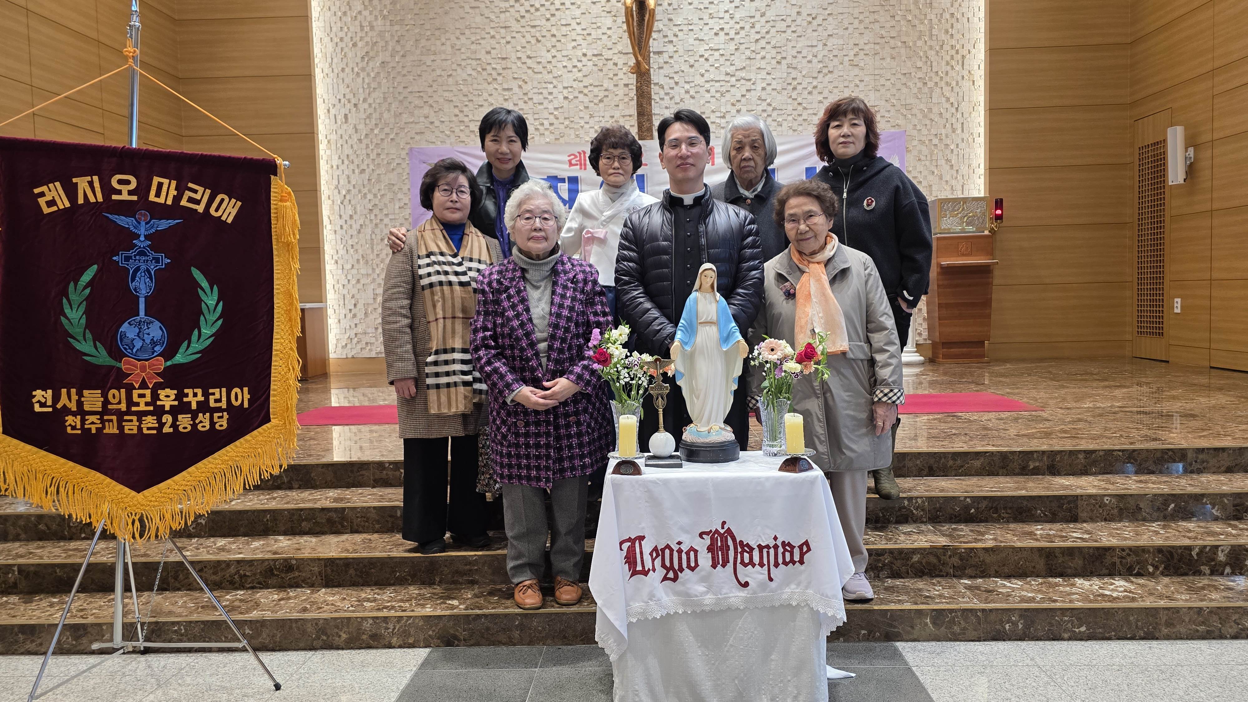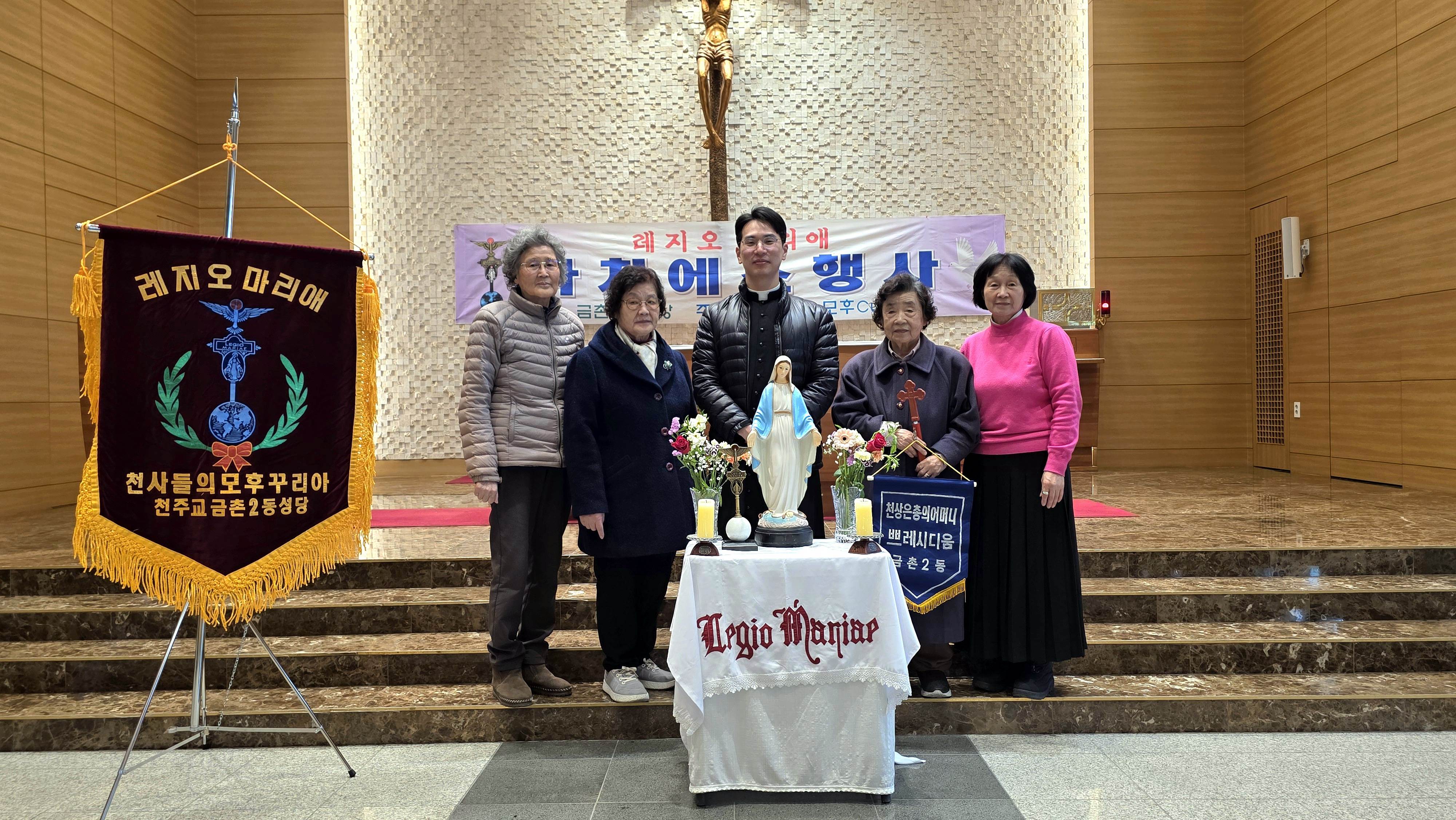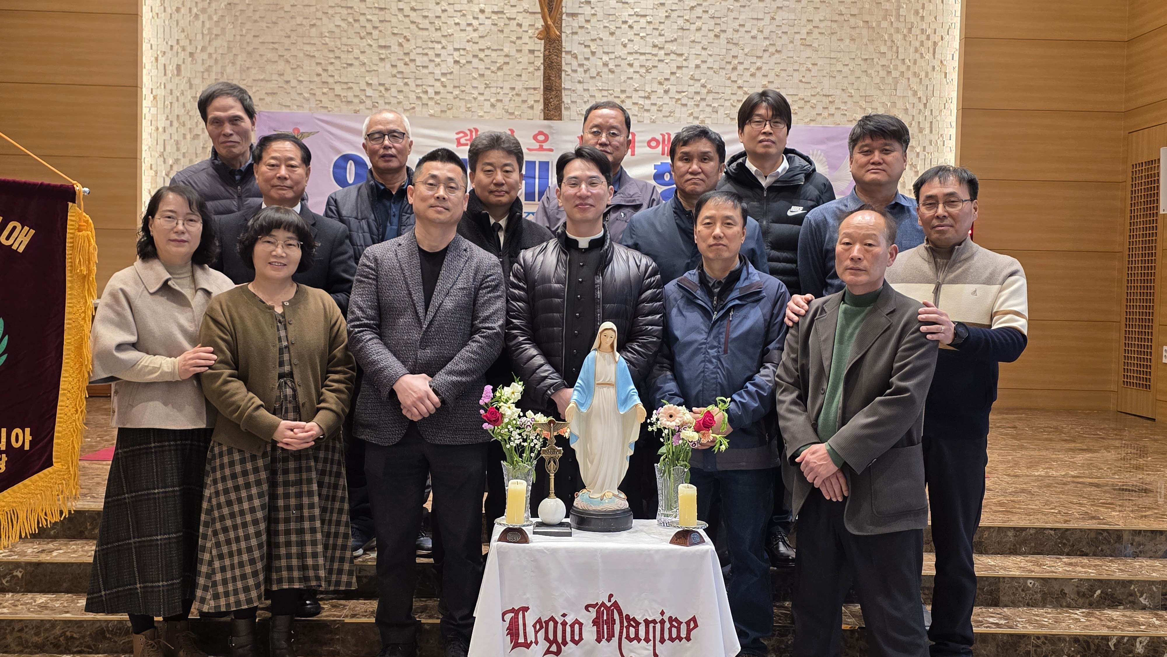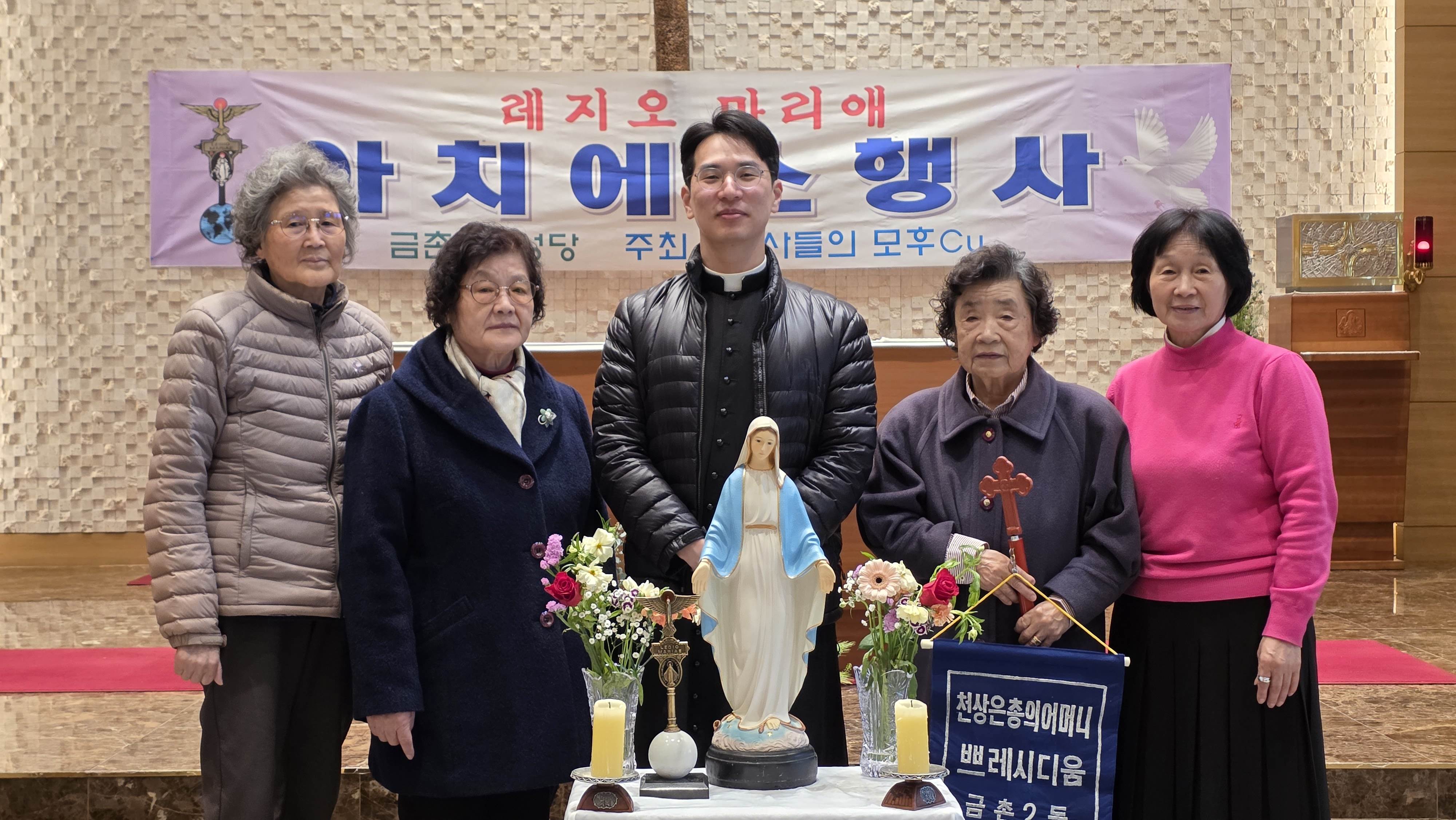 3월15일 아치에스 행사가 있었습니다. 교중미사후 김밥을 간단히 먹고 1층에서 레지오 단기를 들고 2층 성전으로 레지오 단가를 부르며 이동했습니다. 너무 오래 서서 묵주기도를 해서 다리가 아팠지만 많은 의미가 있었습니다.