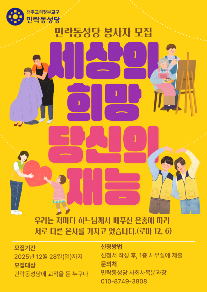 민락동 성당 봉사자 모집 안내