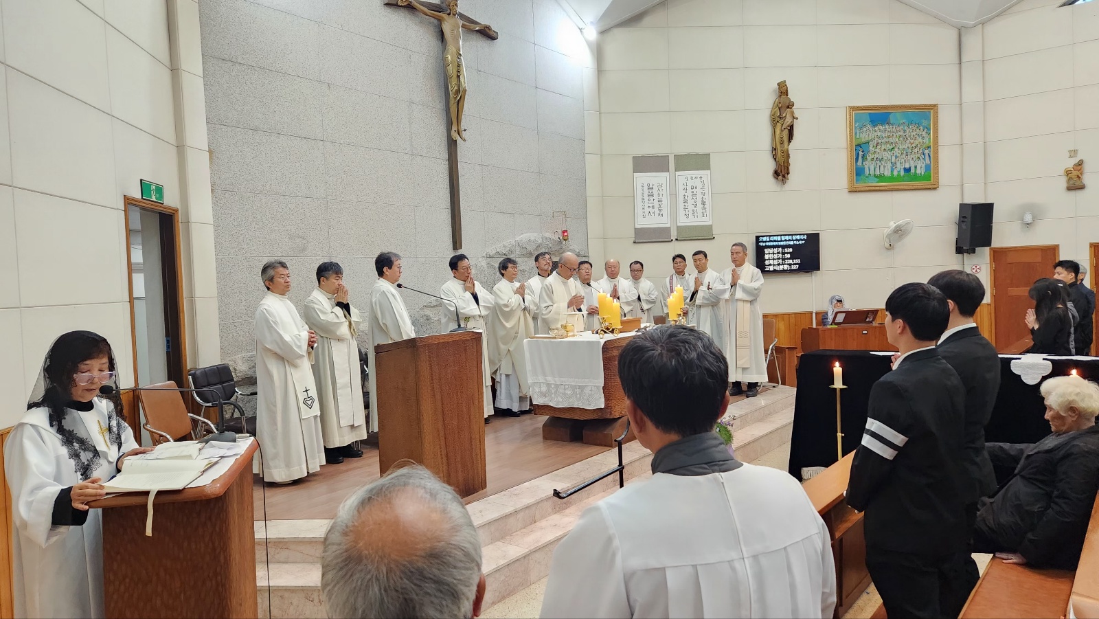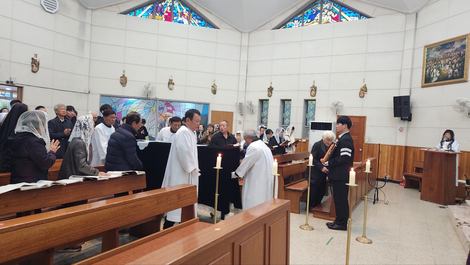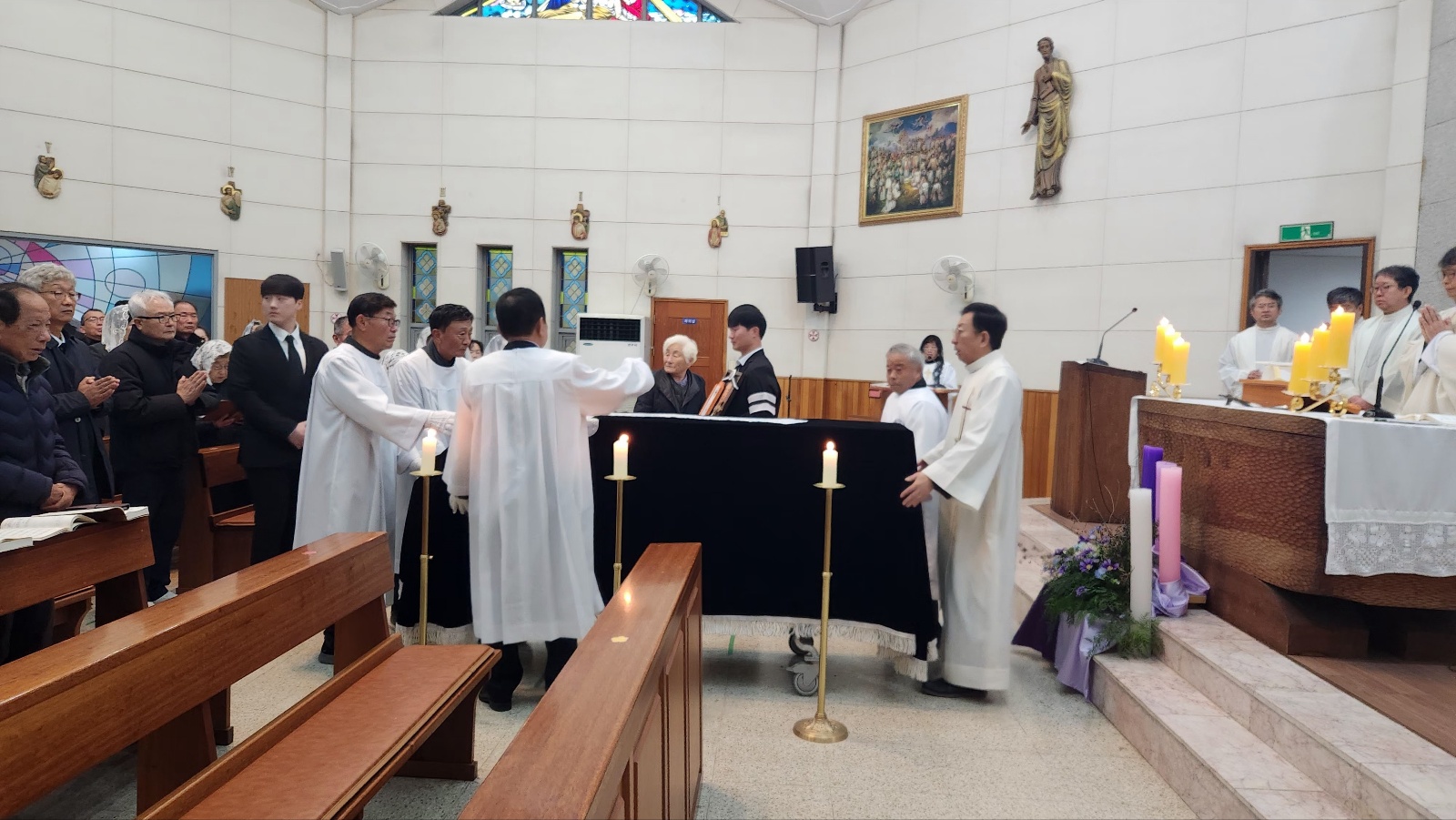 고인의 아들 오재성 베드로 신부님과 수도원 신부님들, 인접성당 (전곡, 송내) 주임신부님과 교우, 본당교우들과 유가족 들이 수도원 신부님으 미사집전으로 고인의 마지막 가시는 길 주님께 온전히 의탁하며,  주님으 품에서 영명하시길 기도드리는 시간이 되었습니다.