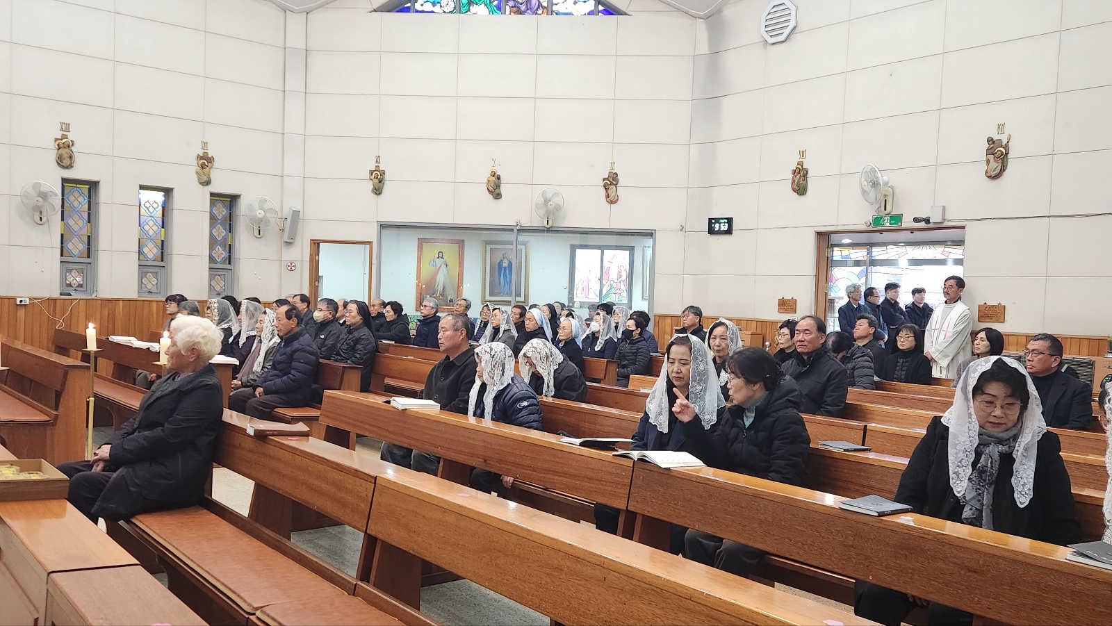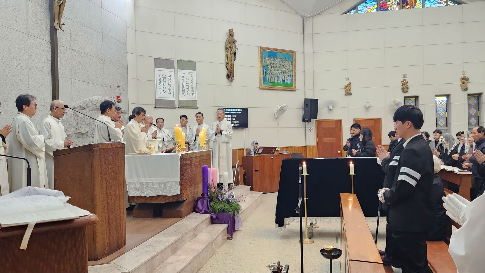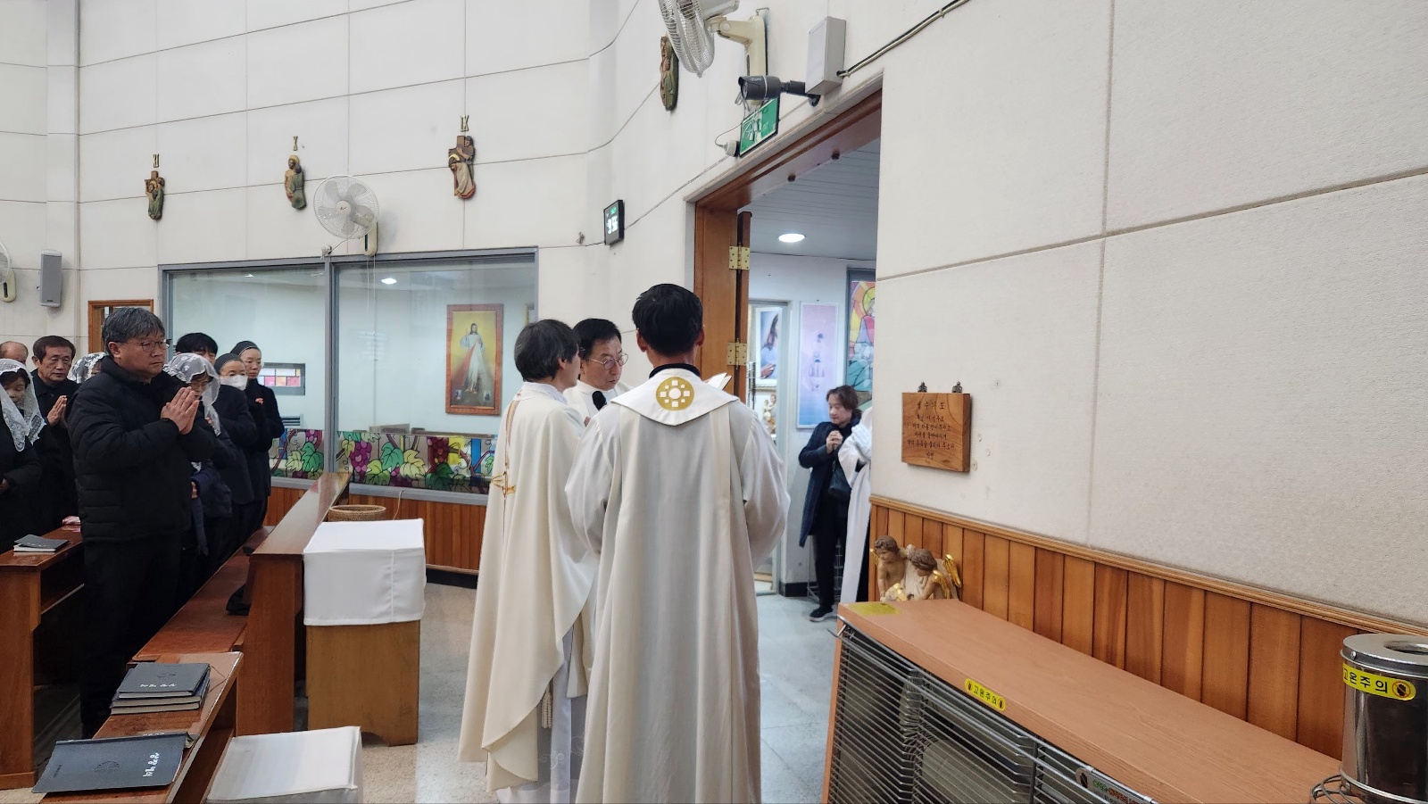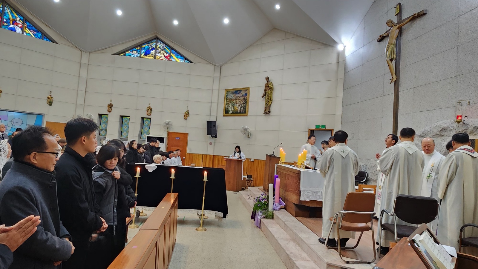 고인의 아들 오재성 베드로 신부님과 수도원 신부님들, 인접성당 (전곡, 송내) 주임신부님과 교우, 본당교우들과 유가족 들이 수도원 신부님으 미사집전으로 고인의 마지막 가시는 길 주님께 온전히 의탁하며,  주님으 품에서 영명하시길 기도드리는 시간이 되었습니다.