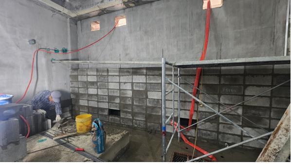 2층 식복사실 시멘트벽돌 쌓기