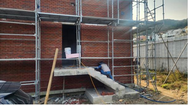 후면 계단실 측벽 적벽돌 쌓기