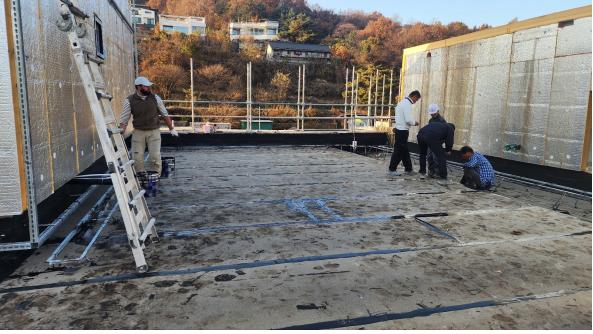 옥상바닥 방수작업 완료 (외단열 DOWN 구간은 2겹 보강시공)