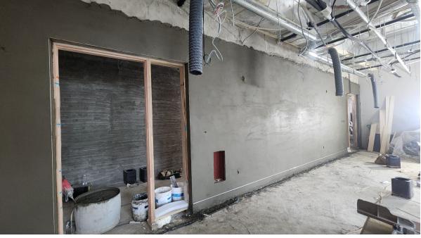 중강당 벽체 미장 작업