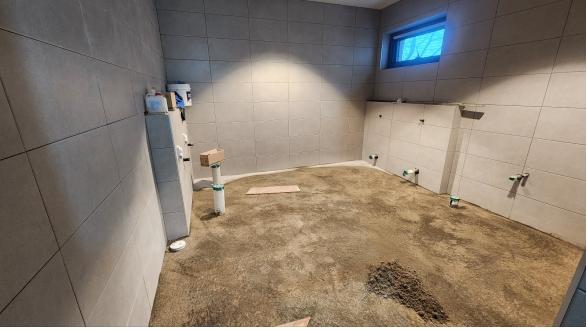 남자화장실 바닥타일 바탕 몰탈작업