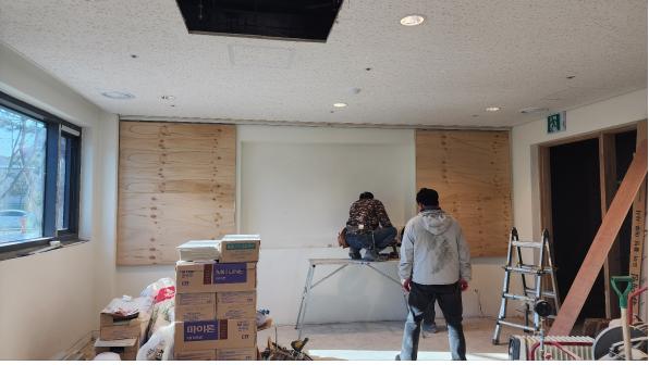 중강당 화이트보드 슬라이딩 작업