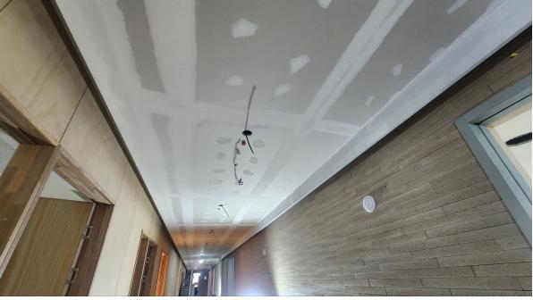 1층 복도 천정 석고보드면 PUTTY 작업 및 ST’L 몰딩면 도장