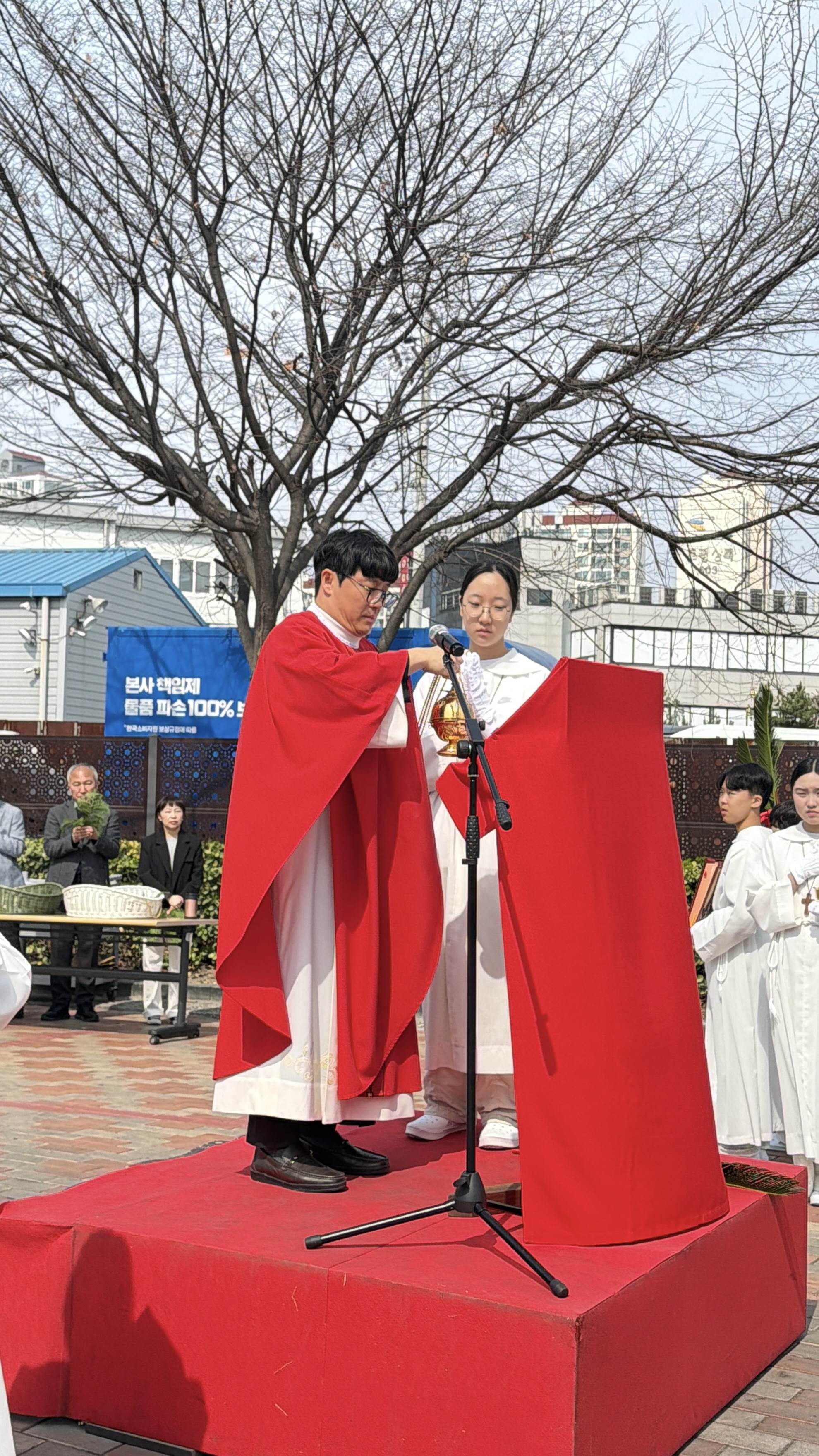 교우분들께서는 성지를 손에 들고 경건한 마음으로 행렬에 참여하시며, 예수님을 환영했던 그날의 모습을 떠올려보았습니다. 이어지는 미사 안에서는 예수님의 수난을 함께 묵상하며, 우리를 향한 사랑과 희생을 마음에 새기는 은혜로운 시간을 가졌습니다.