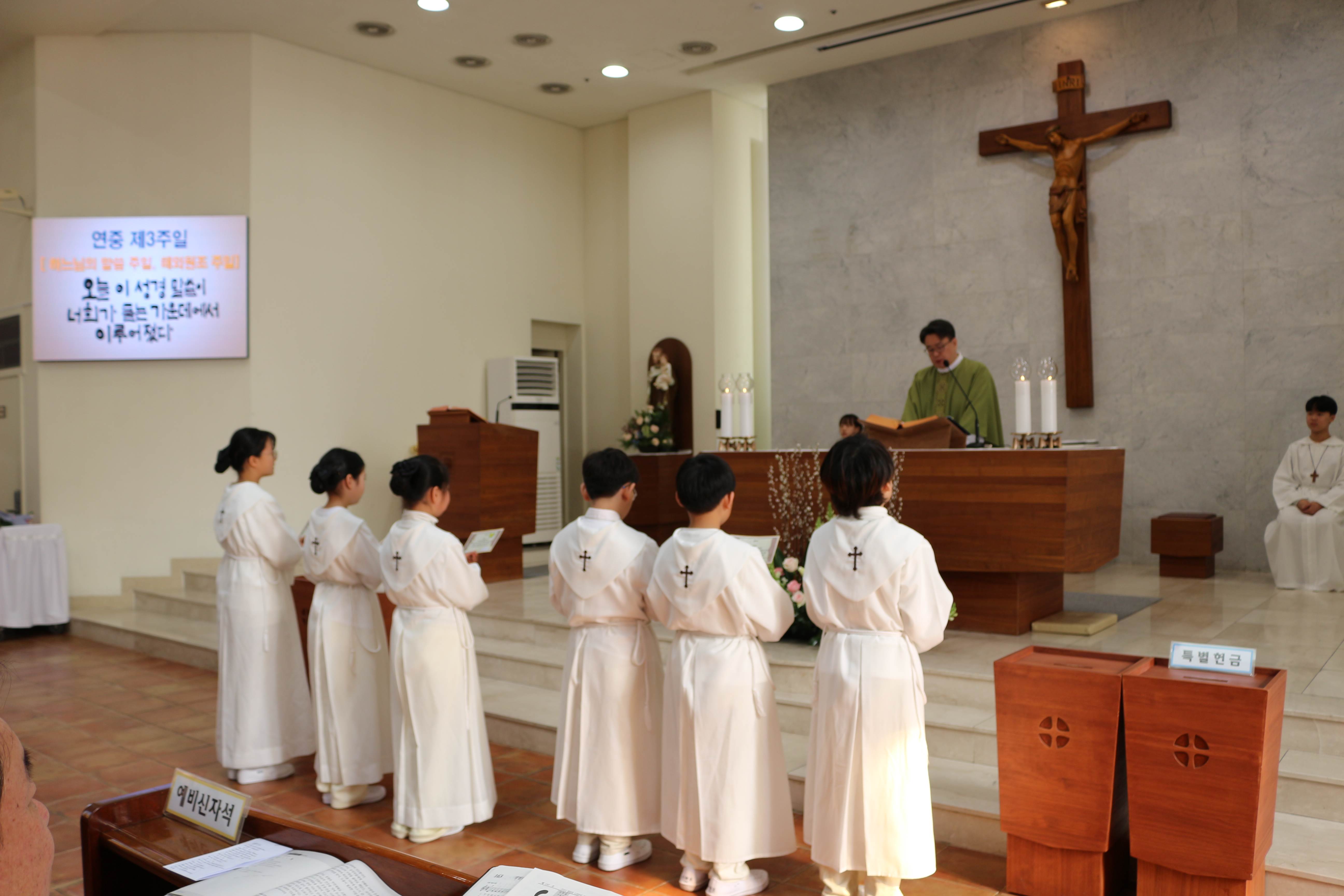 하느님 앞에서 봉사의 마음을 다짐하며 정성스럽게 미사에 참여하는 모습이 무척 든든하고 아름다웠습니다. 앞으로 제단 위에서 하느님의 사랑을 전하는 작은 손길로 성장해가길 함께 기도합니다.