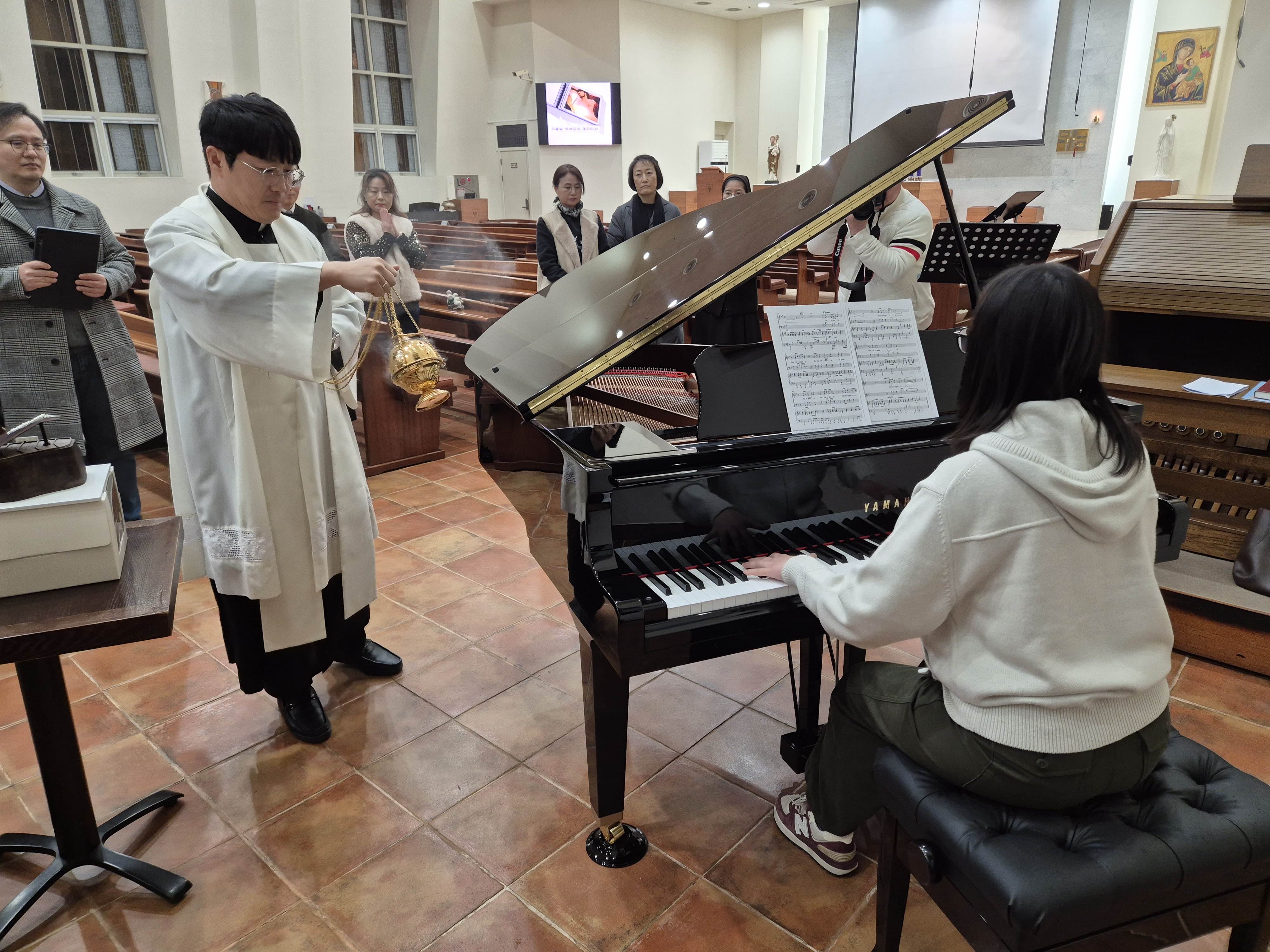 신부님의 축복식을 통해 이 피아노가 하느님을 찬미하는 성스러운 도구로 사용되기를 바라며,