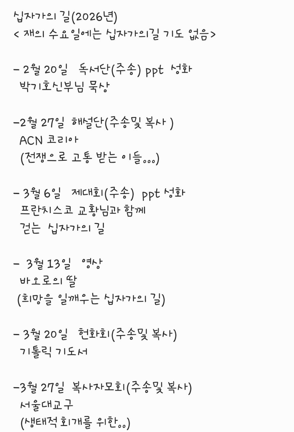 적어도 1번의 십자가의 길을 봉헌해야 합니다.