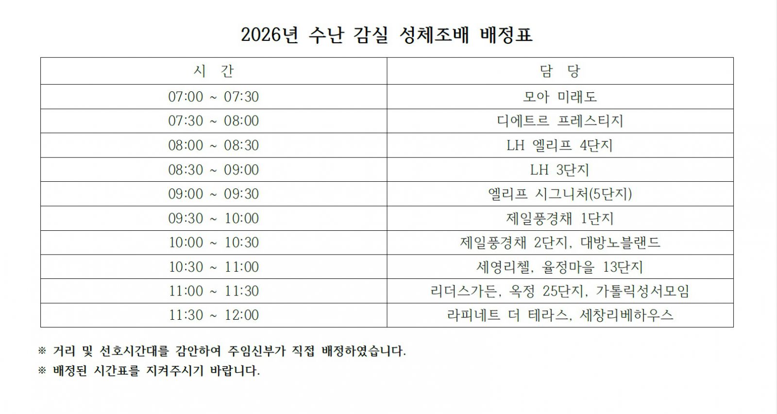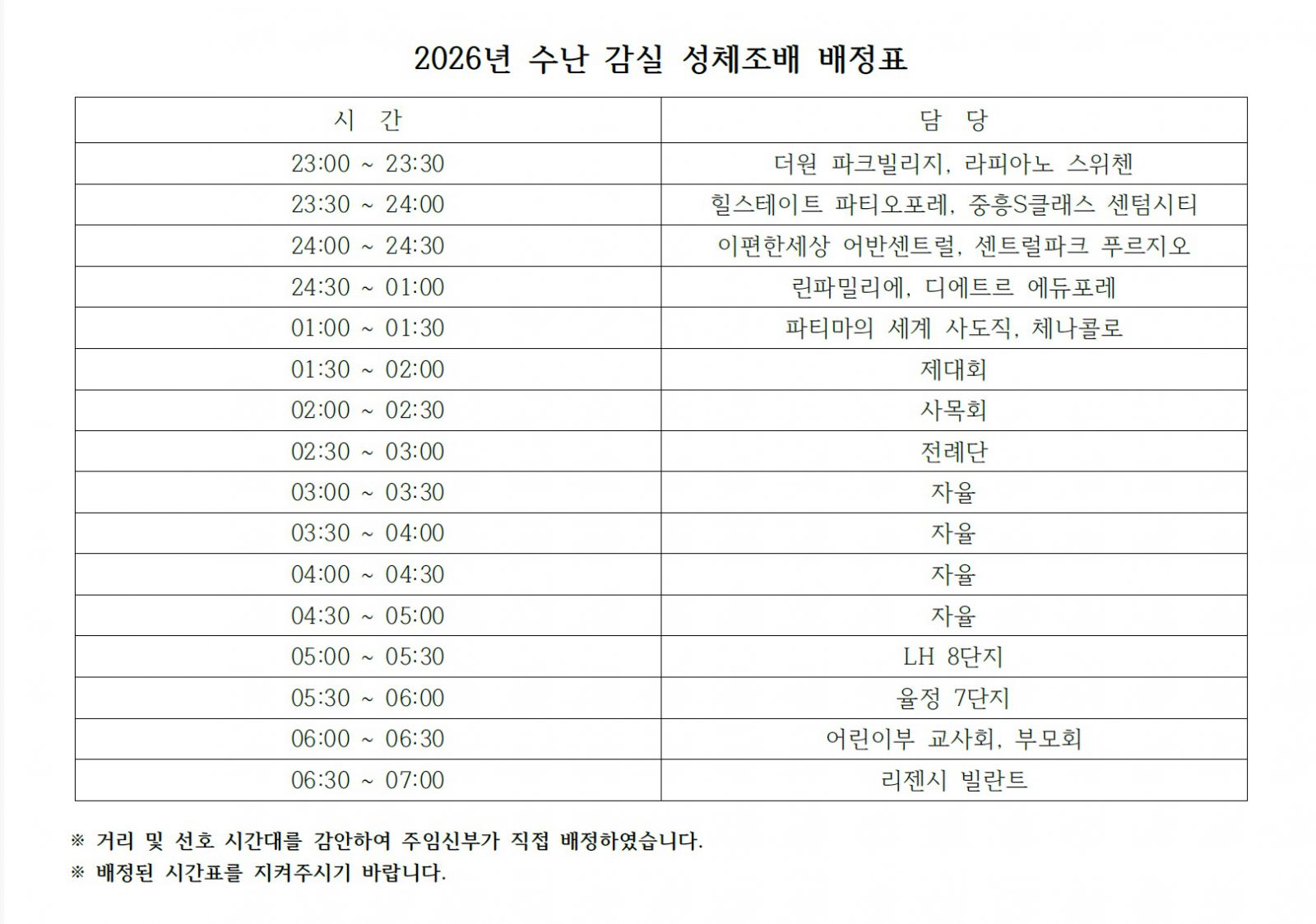 2026년 수난 감실 성체조배 배정표