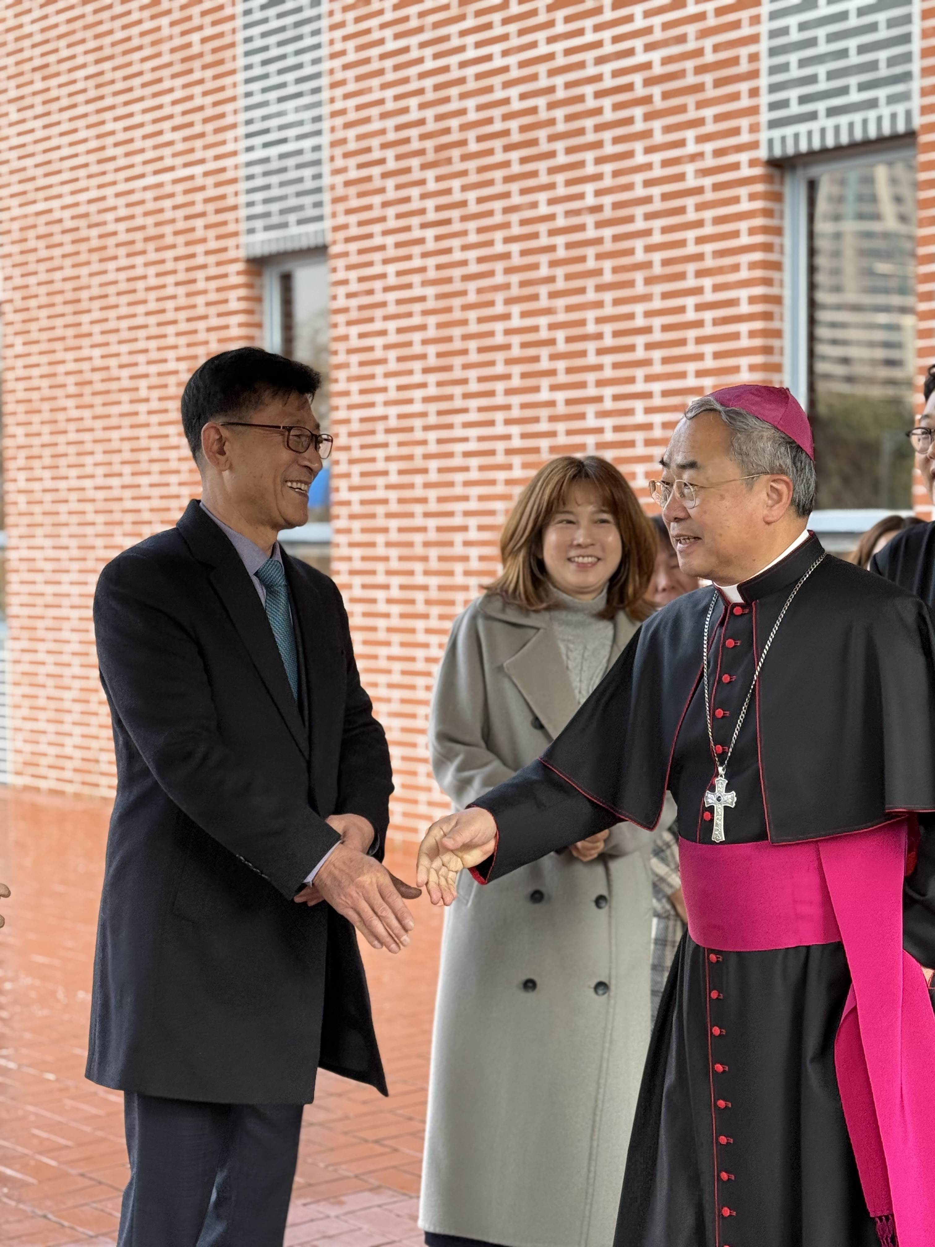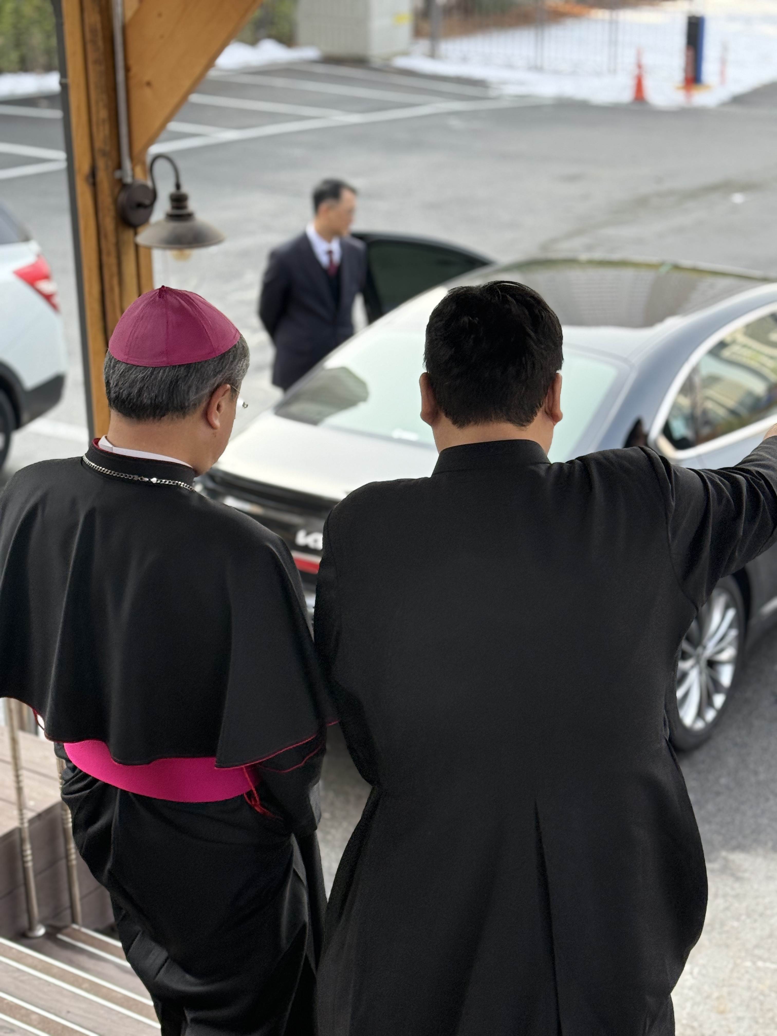 손희송 베네딕토 주교님께서 가시는 길에 주임신부님. 사묵위원들, 봉사자분들이 함께 배웅해 드렸습니다.